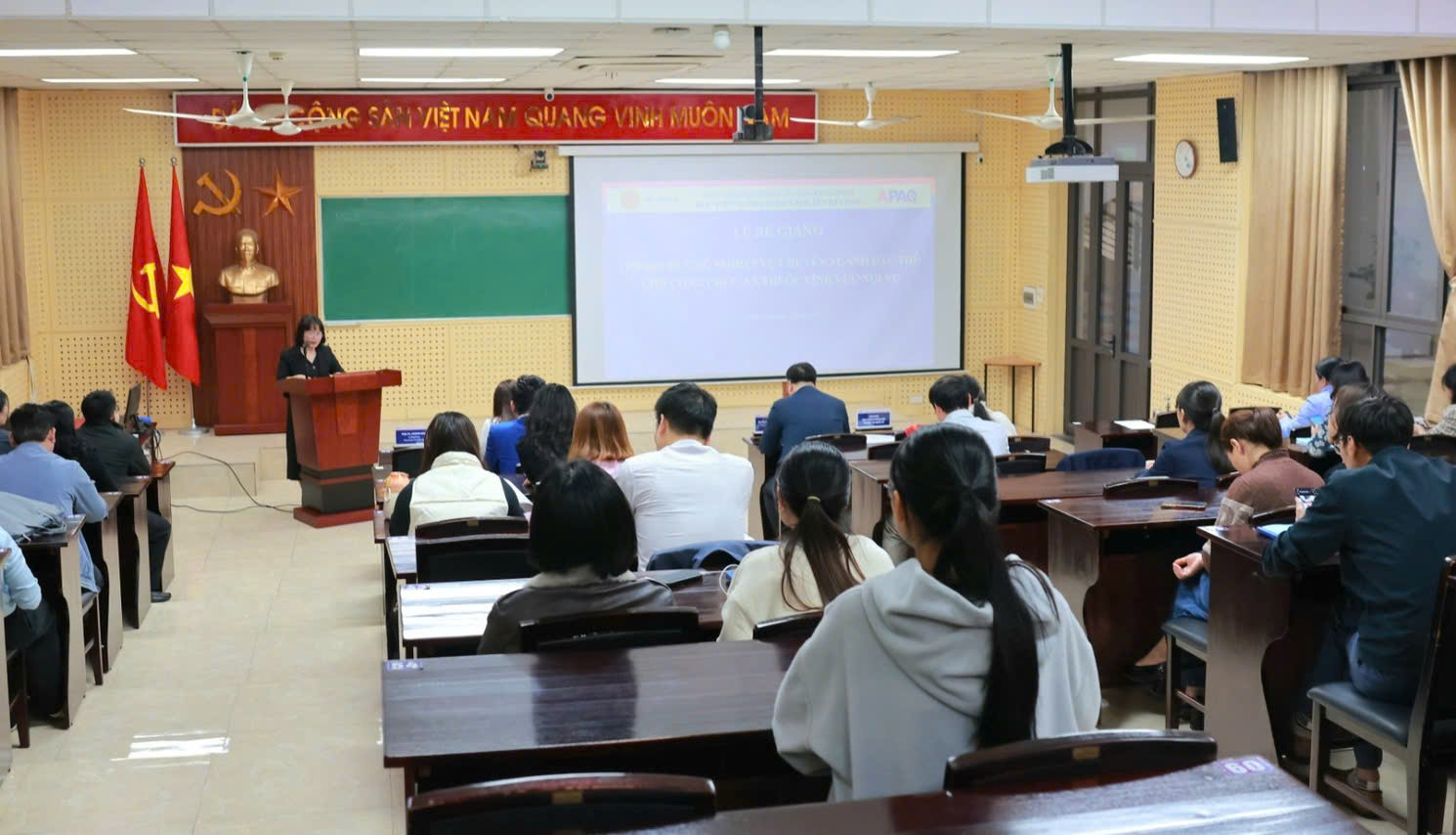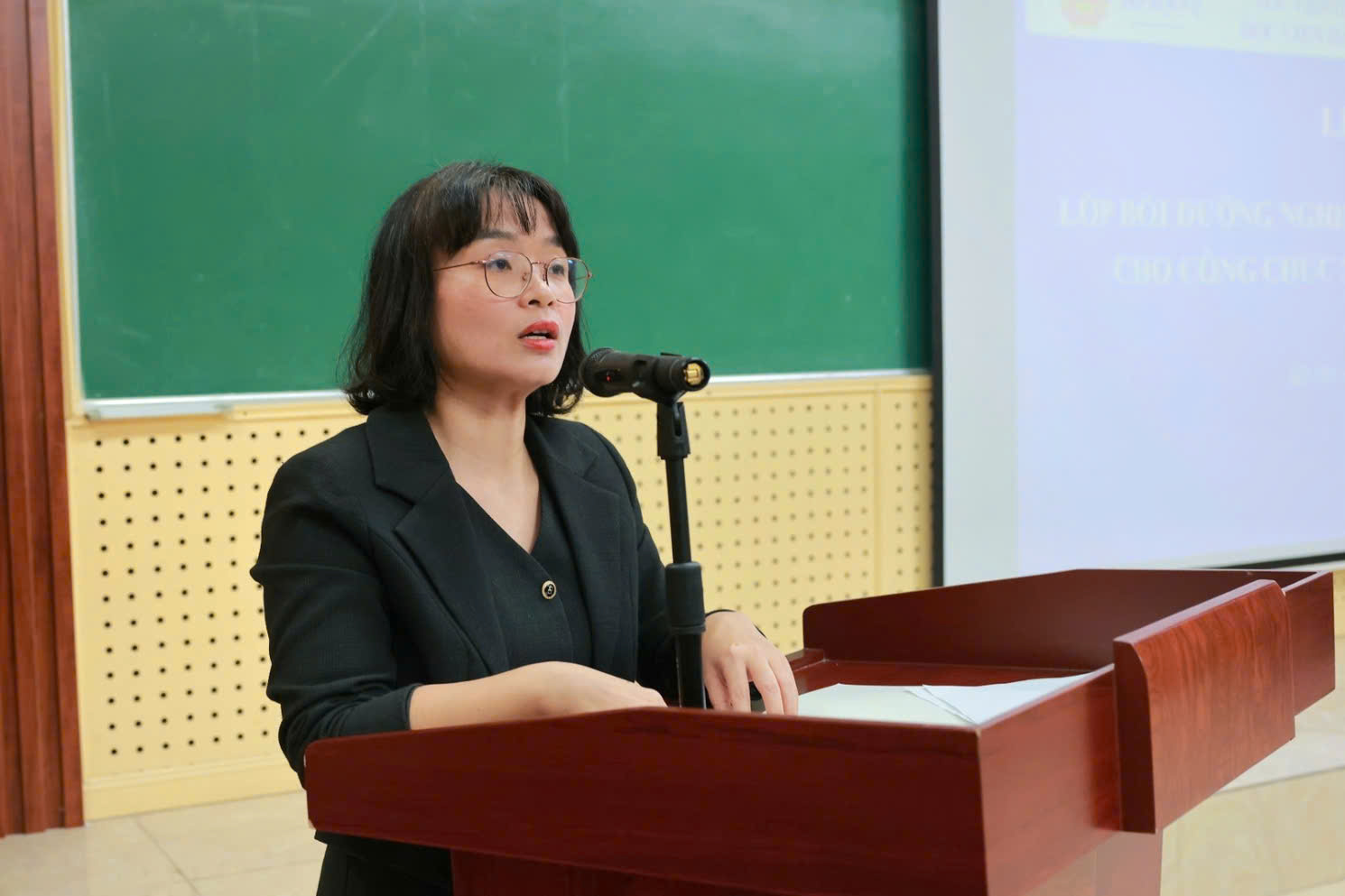 TS. Bùi Thị Thanh Thuý, Phó Trưởng ban, Ban Quản lý khoa học và Hợp tác quốc tế, trình bày Báo cáo tổng kết khoá học.