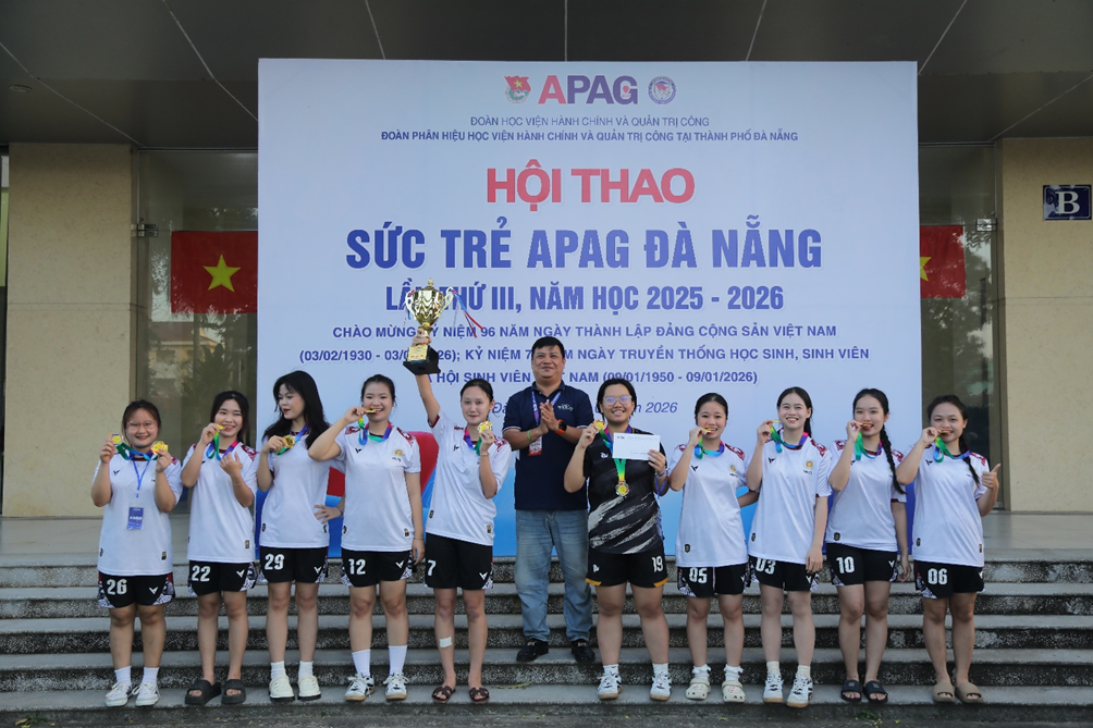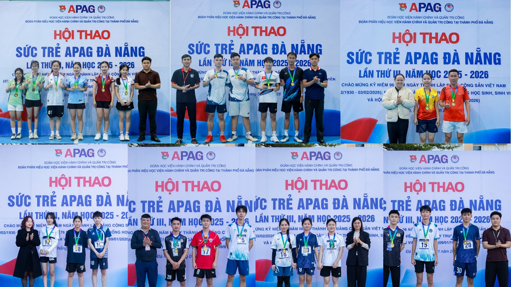 (apag.edu.vn) - Chiều ngày 31/01/2026, Đoàn Thanh niên Phân hiệu Học viện Hành chính và Quản trị công tại TP. Đà Nẵng (Đoàn Phân hiệu) đã long trọng tổ chức Lễ bế mạc và trao giải Hội thao “Sức trẻ APAG Đà Nẵng” lần thứ III, năm học 2025 - 2026.