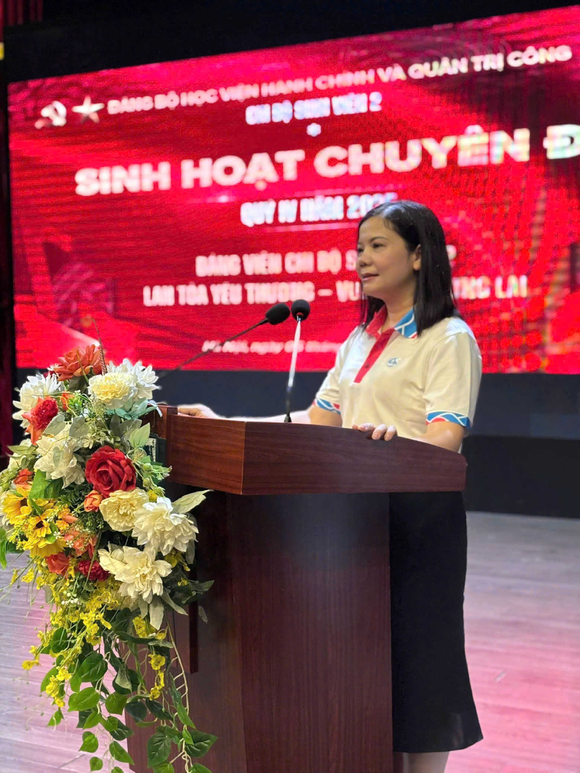 Phát biểu khai mạc, đồng chí Đặng Thị Hạnh - Bí thư Chi bộ Sinh viên 2 nhấn mạnh: “Yêu thương không chỉ là cảm xúc, mà còn là sức mạnh kết nối con người, khơi dậy lòng nhân ái, trách nhiệm và tinh thần cống hiến.” Thông điệp ấy lan tỏa xuyên suốt buổi sinh hoạt, trở thành nguồn cảm hứng để mỗi đảng viên soi rọi, rèn luyện và cống hiến nhiều hơn cho tập thể.