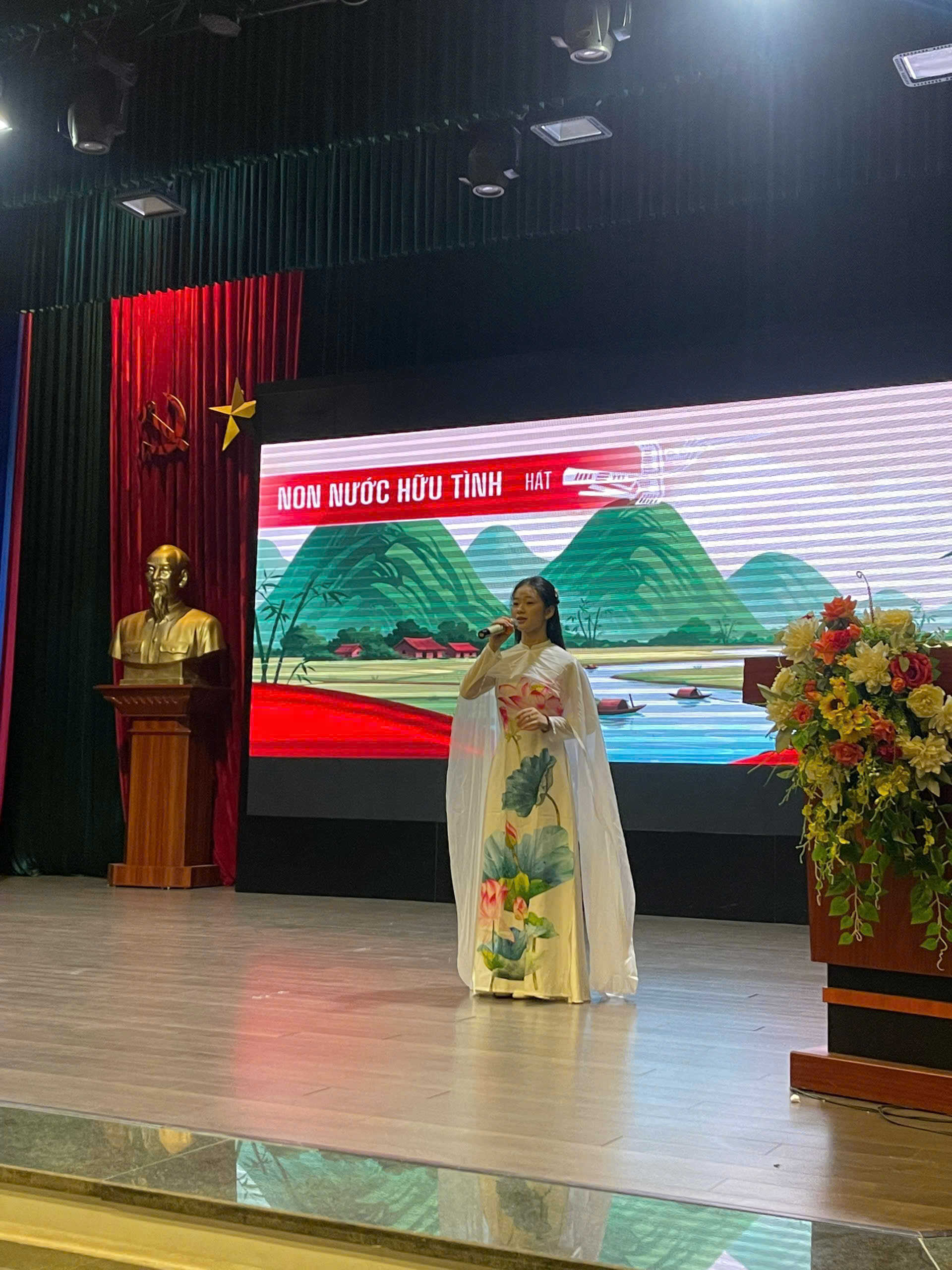 Giọng ca ngọt ngào của đồng chi Cẩm Ly với tiết mục đơn ca “Non nước hữu tình” mở màn cho chương trình văn nghệ của Chi bộ.