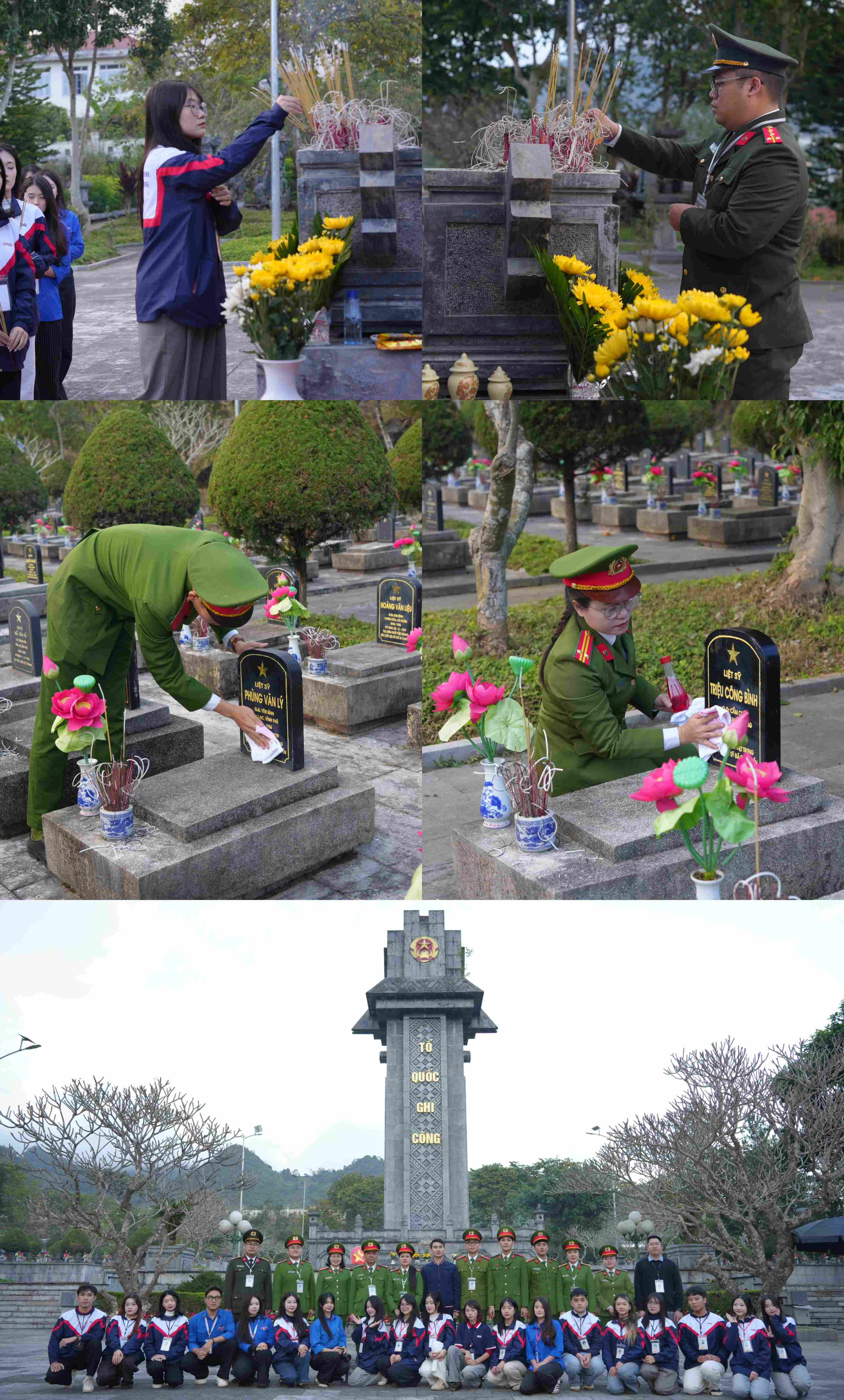 Đoàn thiện nguyện dâng hương tại Nghĩa trang Liệt sĩ tỉnh Lai Châu.Bên cạnh các hoạt động an sinh xã hội, đoàn thiện nguyện đã tổ chức lễ dâng hương tưởng niệm tại Nghĩa trang Liệt sĩ tỉnh Lai Châu nhằm bày tỏ lòng thành kính và tri ân sâu sắc đối với các anh hùng liệt sĩ đã anh dũng hy sinh vì sự nghiệp đấu tranh giải phóng dân tộc, xây dựng và bảo vệ Tổ quốc. Trong không khí trang nghiêm, thành kính, các thành viên trong đoàn đã dành phút mặc niệm, thắp nén hương thơm để tưởng nhớ, khắc ghi công lao to lớn của các thế hệ cha anh - những người đã cống hiến trọn tuổi thanh xuân, xương máu cho nền độc lập, tự do của dân tộc và cuộc sống bình yên hôm nay.