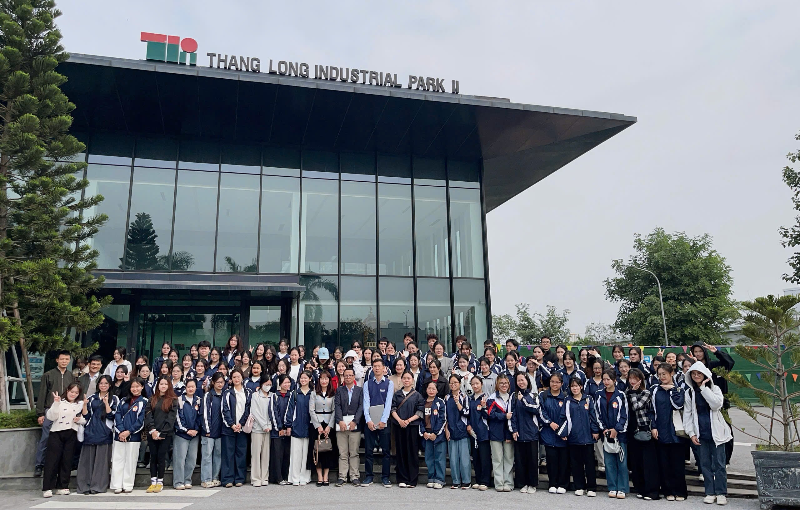 Tiếp nối chương trình, sinh viên đã có buổi trao đổi chuyên sâu tại Công ty TNHH Khu Công nghiệp (KCN) Thăng Long II – nơi tập trung nhiều doanh nghiệp FDI lớn. Tại đây, đại diện Ban lãnh đạo KCN giới thiệu về lịch sử hình thành, định hướng phát triển và mô hình vận hành của khu công nghiệp trong bối cảnh hội nhập. Sinh viên được cung cấp những thông tin quan trọng về hoạt động quản trị nhân lực trong môi trường sản xuất công nghiệp như chiến lược thu hút và giữ chân lao động, quản lý hiệu suất, xây dựng văn hóa tổ chức, quản lý quan hệ lao động cũng như tác động của chuyển đổi số đến công tác quản trị nhân lực. Đây là nền tảng quan trọng giúp sinh viên hiểu rõ thách thức và yêu cầu của công tác quản trị nhân lực trong bối cảnh cạnh tranh lao động ngày càng gay gắt.