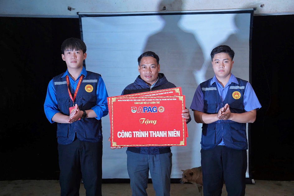 Đại diện CLB Lý luận trẻ trao tặng bảng tượng trưng 65 suất quà và công trình thanh niên
