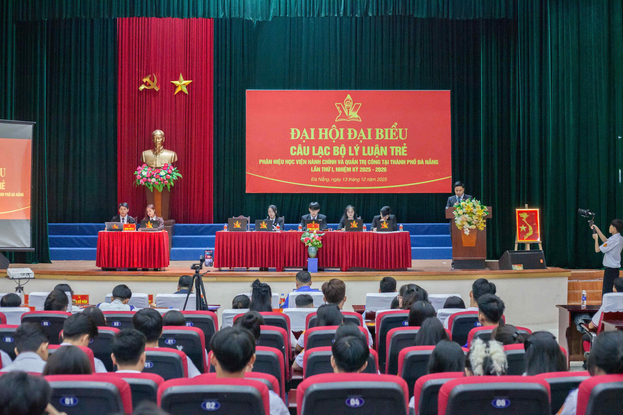 (apag.edu.vn) - Chiều ngày 13/12/2025, tại Hội trường H, Phân hiệu Học viện Hành chính và Quản trị công tại thành phố Đà Nẵng, Đại hội đại biểu Câu lạc bộ Lý luận trẻ lần thứ I, nhiệm kỳ 2025 - 2026 đã được tổ chức trọng thể, đánh dấu bước trưởng thành quan trọng của một mô hình sinh hoạt học thuật, lý luận chính trị trong sinh viên Trường Đảng.
