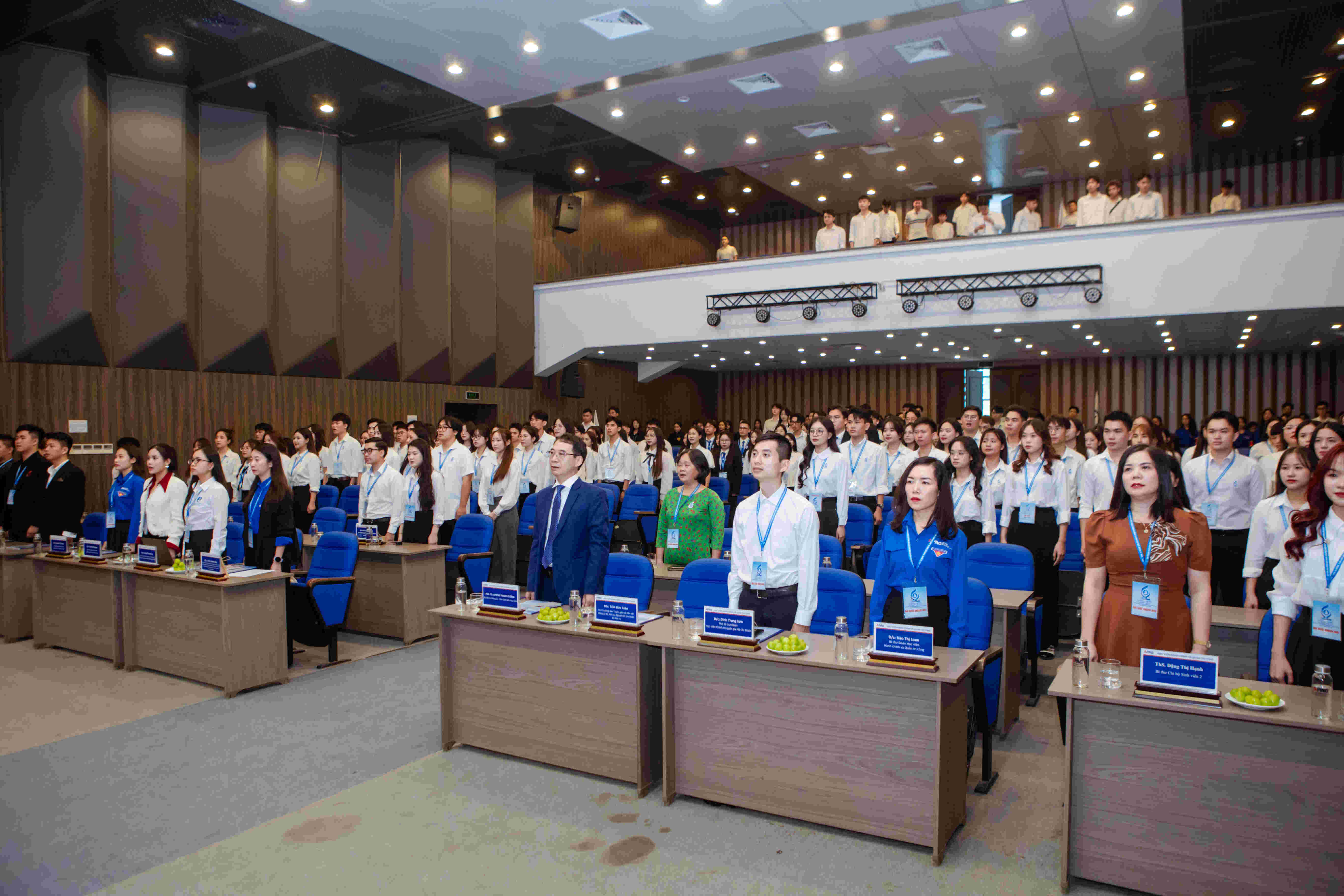Toàn cảnh Đại hội.Đại hội vinh dự được đón tiếp PGS.TS Lương Thanh Cường, Phó Bí thư Đảng ủy, Phó Giám đốc Học viện Hành chính và Quản trị công; đồng chí Vũ Thị Minh Hằng, Ủy viên Ban Chấp hành, Phó Trưởng Ban Công tác Đoàn và Thanh thiếu nhi Ủy ban MTTQ Việt Nam Thành phố, Phó Chủ tịch Thường trực Hội Sinh viên Việt Nam Thành phố Hà Nội; đồng chí Lương Thúy Hằng, Chuyên viên Ban Trường học Thanh niên, Ủy ban MTTQ Việt Nam Thành phố Hà Nội; đồng chí Đinh Trung Sơn, Phó Bí thư Đoàn Thanh niên Học viện Chính trị Quốc gia Hồ Chí Minh; đồng chí Đào Thị Loan, Ủy viên Ban Thường vụ Đoàn Thanh niên Học viện Chính trị Quốc gia Hồ Chí Minh, Bí thư Đoàn Thanh niên Học viện Hành chính và Quản trị công; đồng chí Trần Thị Phượng, Ủy viên Ban Chấp hành Đoàn Thanh niên Học viện Chính trị Quốc gia Hồ Chí Minh, Phó Bí thư Đoàn Thanh niên Học viện Hành chính và Quản trị công; cùng các đại biểu đại diện các đơn vị, Liên chi Hội, Câu lạc bộ, Hội, Đội, Nhóm trong Học viện.