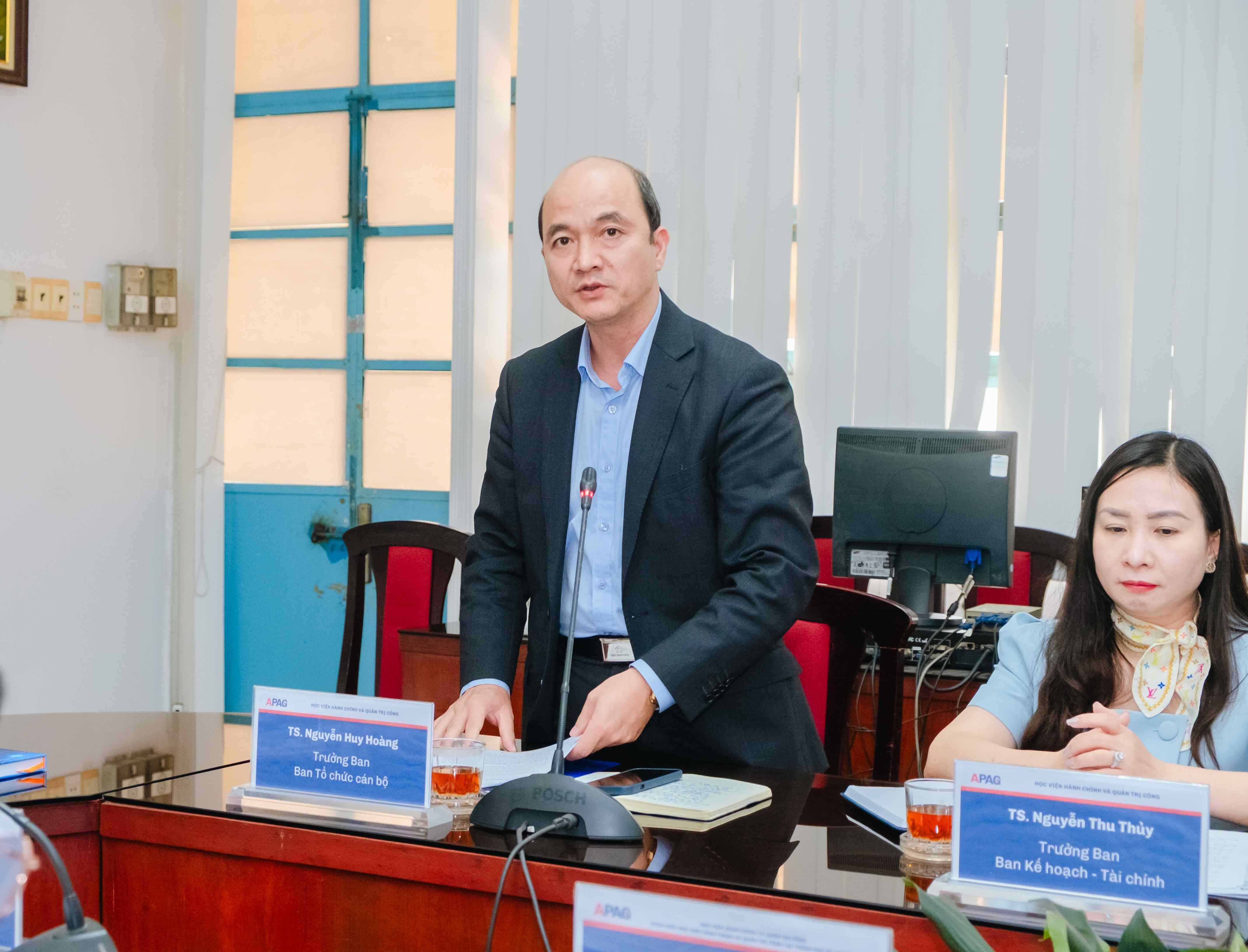 TS. Nguyễn Huy Hoàng - Trưởng ban, Ban Tổ chức cán bộ phát biểu tại buổi làm việc.