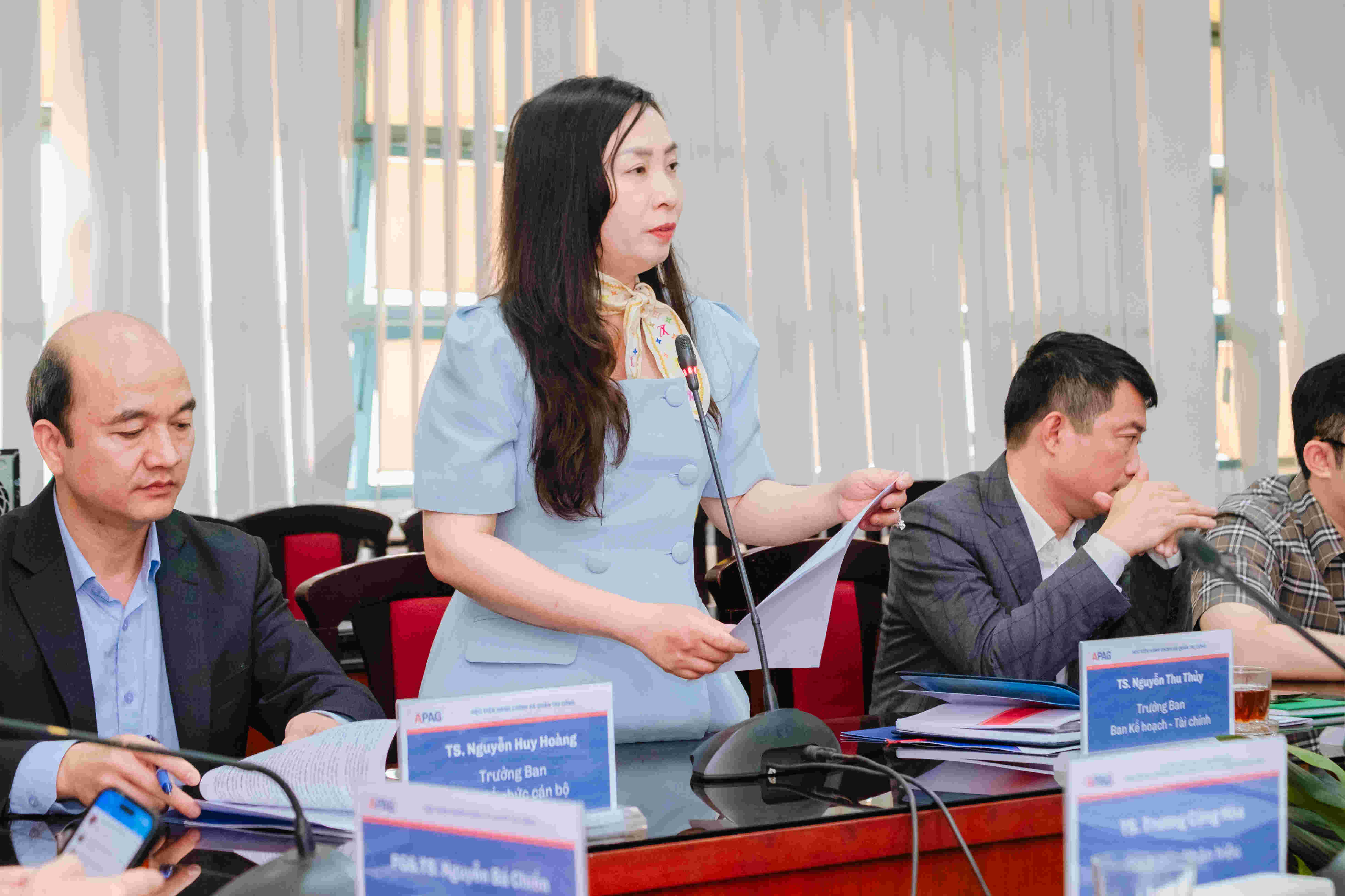 TS. Nguyễn Thu Thủy - Trưởng ban, Ban Kế hoạch - Tài chính phát biểu tại buổi làm việc.