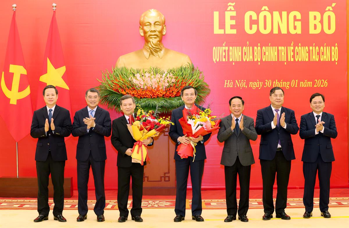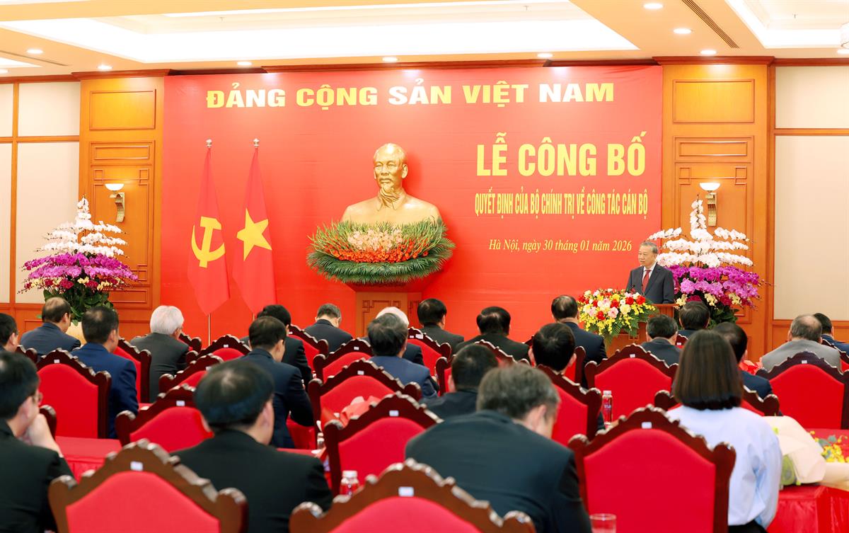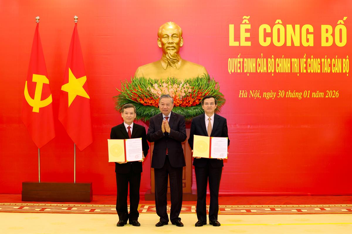 (apag.edu.vn) – Chiều 30/01/2026, tại Trụ sở Trung ương Đảng, Tổng Bí thư Tô Lâm chủ trì Lễ công bố và trao Quyết định của Bộ Chính trị phân công, bổ nhiệm đồng chí Đoàn Minh Huấn, Ủy viên Bộ Chính trị, Phó Giám đốc Thường trực Học viện Chính trị quốc gia Hồ Chí Minh giữ chức Giám đốc Học viện Chính trị quốc gia Hồ Chí Minh; Phó Trưởng Ban Chỉ đạo Trung ương về bảo vệ nền tảng tư tưởng của Đảng, đấu tranh phản bác các quan điểm sai trái, thù địch trong tình hình mới; Phó Trưởng Ban Chỉ đạo Tổng kết một số vấn đề lý luận và thực tiễn về công tác đổi mới theo định hướng xã hội chủ nghĩa trong 40 năm qua ở Việt Nam.