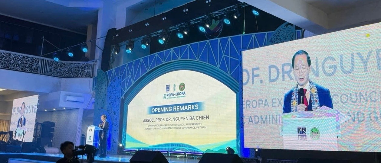 PGS.TS. Nguyễn Bá Chiến, Giám đốc Học viện, Chủ tịch Hội đồng điều hành Tổ chức Hành chính Miền Đông Thế giới (EROPA) tham dự và phát biểu khai mạc Hội nghị EROPA năm 2025