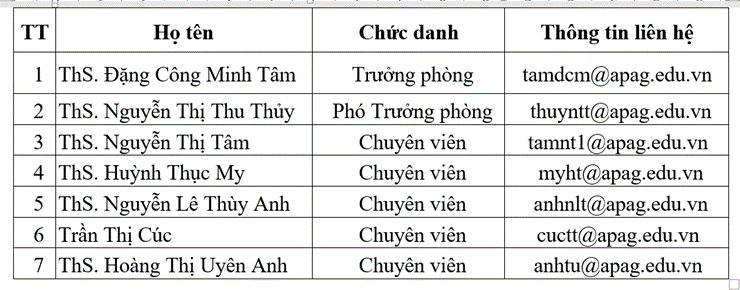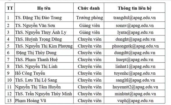 + Phó Trưởng phòng: ThS. Nguyễn Thị Thu Thủy
