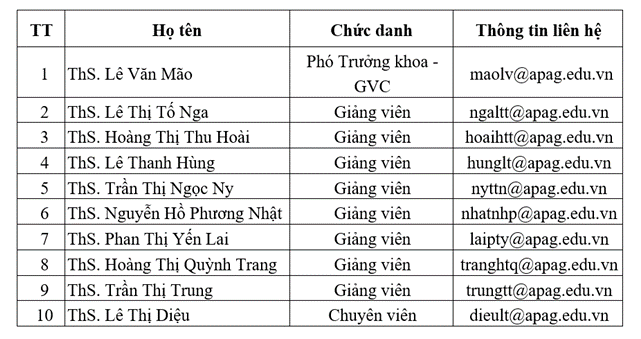 + Phó Trưởng khoa: Lê Văn Mão