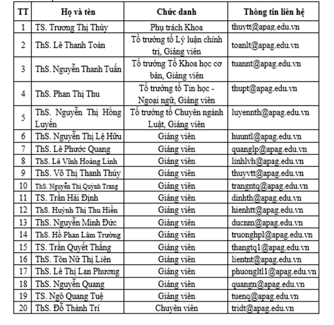 - Số lượng viên chức, người lao động: 20 viên chức, giảng viên