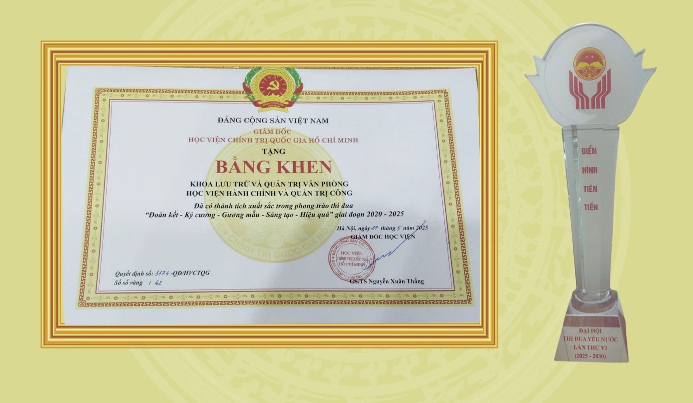 Những phần thưởng, danh hiệu và kết quả đạt được trong suốt thời gian qua chính là minh chứng sinh động cho truyền thống đoàn kết, nỗ lực không ngừng của tập thể Khoa Lưu trữ và Quản trị văn phòng. Đó không chỉ là niềm tự hào của mỗi cán bộ, giảng viên, mà còn là nguồn động viên to lớn, khích lệ toàn thể Khoa tiếp tục phấn đấu, giữ vững danh hiệu thi đua, không ngừng đổi mới, sáng tạo, nâng cao chất lượng đào tạo và nghiên cứu khoa học, góp phần khẳng định vị thế của Khoa trong sự nghiệp phát triển chung của Học viện Hành chính và Quản trị công, của nền hành chính Việt Nam trong thời kỳ hội nhập và chuyển đổi số./.