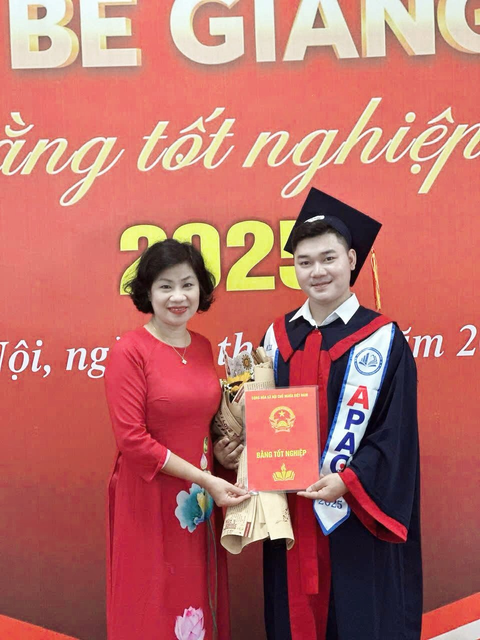 PGS.TS Nguyễn Thị Thu Vân trao bằng tốt nghiệp cho Thủ khoa ngành Quản trị văn phòng năm 2025.