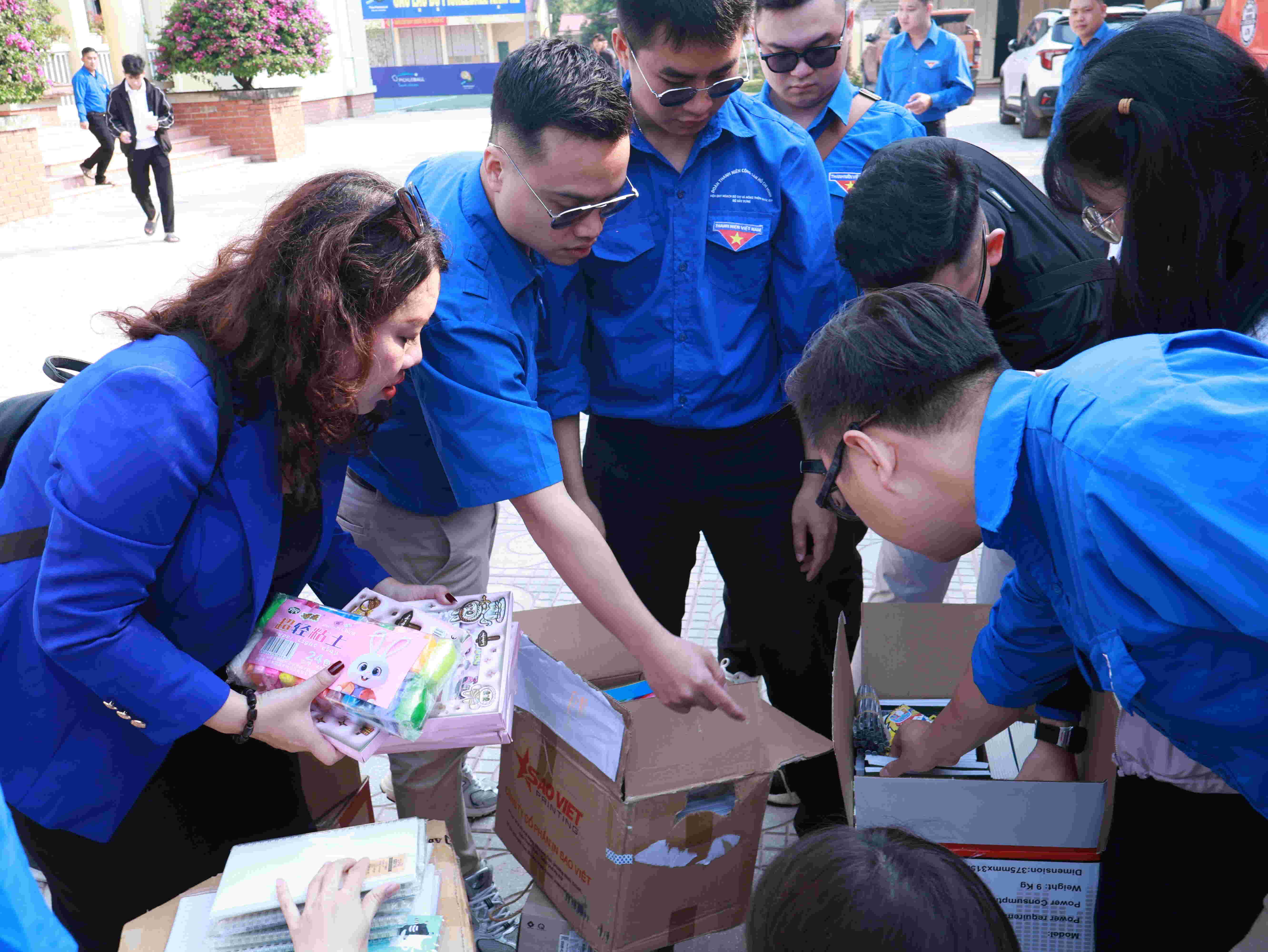 Đoàn trao tặng 500 đầu sách cho tủ sách học đường tại địa phương.Cụ thể, chương trình đã trao tặng hai công trình giếng khoan nước sạch tại các điểm trường; triển khai công trình “Thắp sáng đường quê” với 42 bóng đèn năng lượng mặt trời tại hai bản chưa có điện lưới (Huổi Lụ 2, Tàng Phon); xây dựng tủ sách học đường với 500 đầu sách phục vụ nhu cầu học tập của học sinh địa phương.
