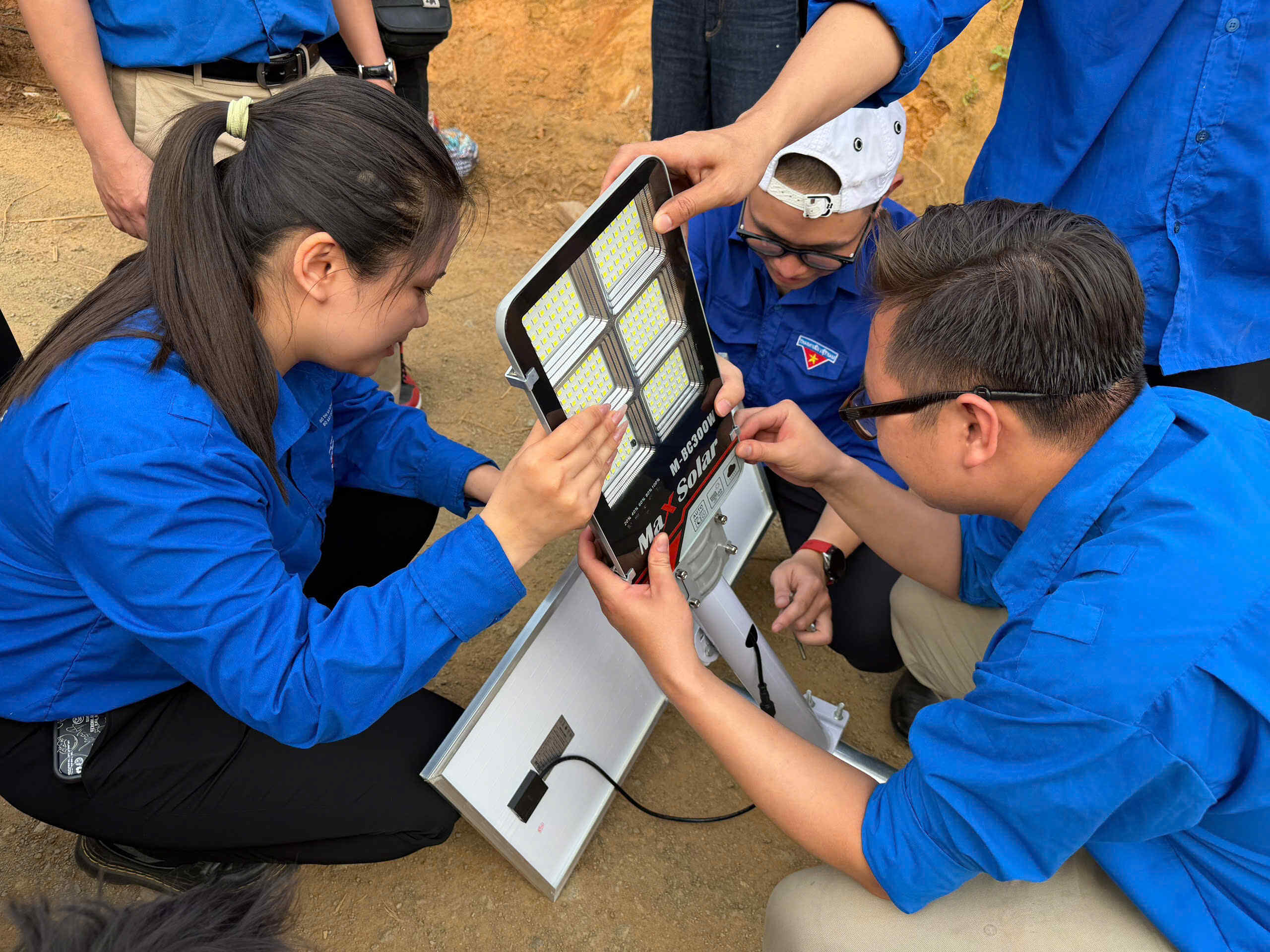 Đoàn trao tặng hệ thống đèn năng lượng mặt trời cho bà con xã Nậm Kè.
