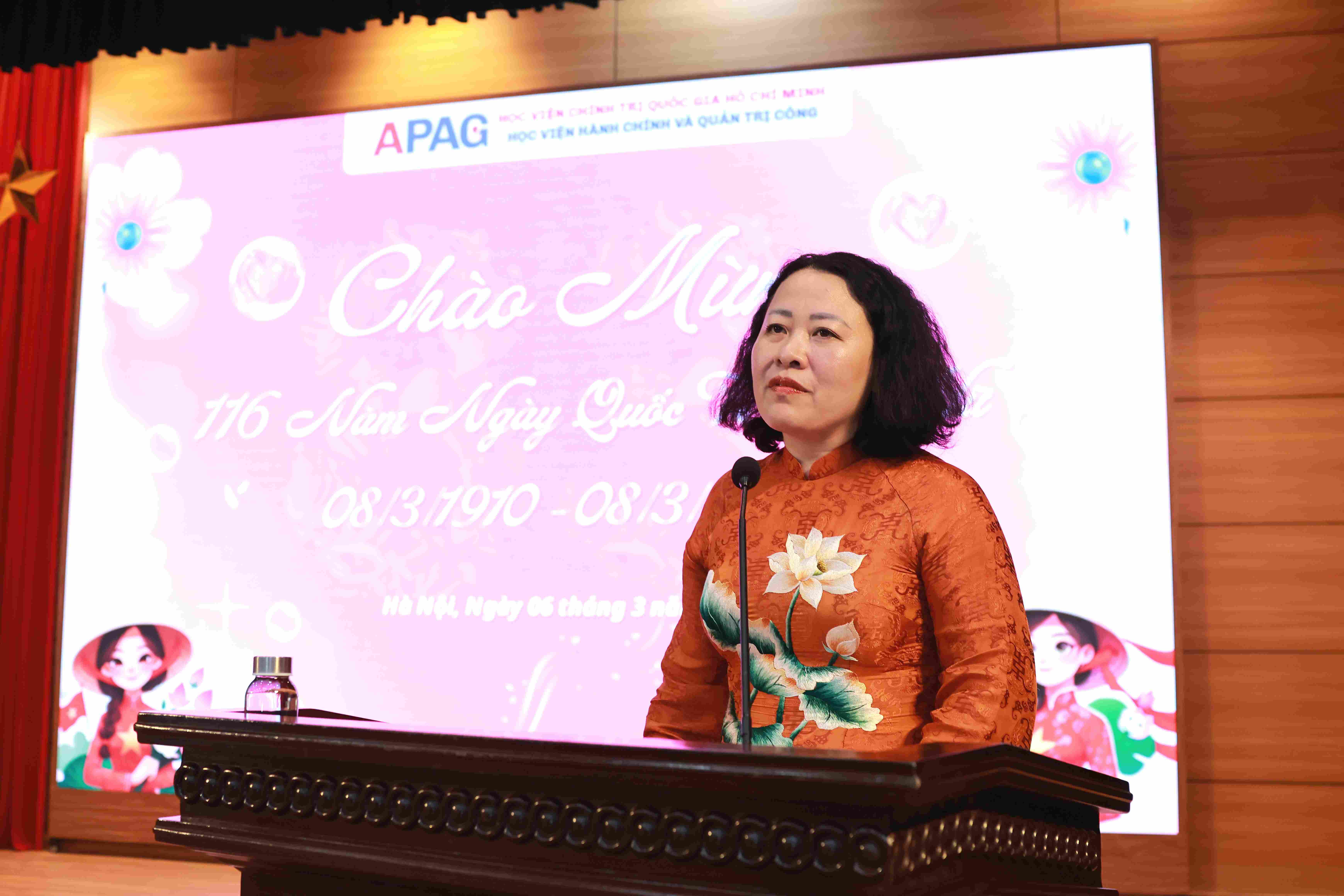 (apag.edu.vn) – Sáng ngày 06/3/2026, tại Hà Nội, Học viện Hành chính và Quản trị công tổ chức chương trình gặp mặt kỷ niệm 116 năm Ngày Quốc tế Phụ nữ (08/3/1910 – 08/3/2026) nhằm tri ân và tôn vinh những đóng góp của đội ngũ nữ giảng viên, viên chức và người lao động trong toàn hệ thống Học viện.