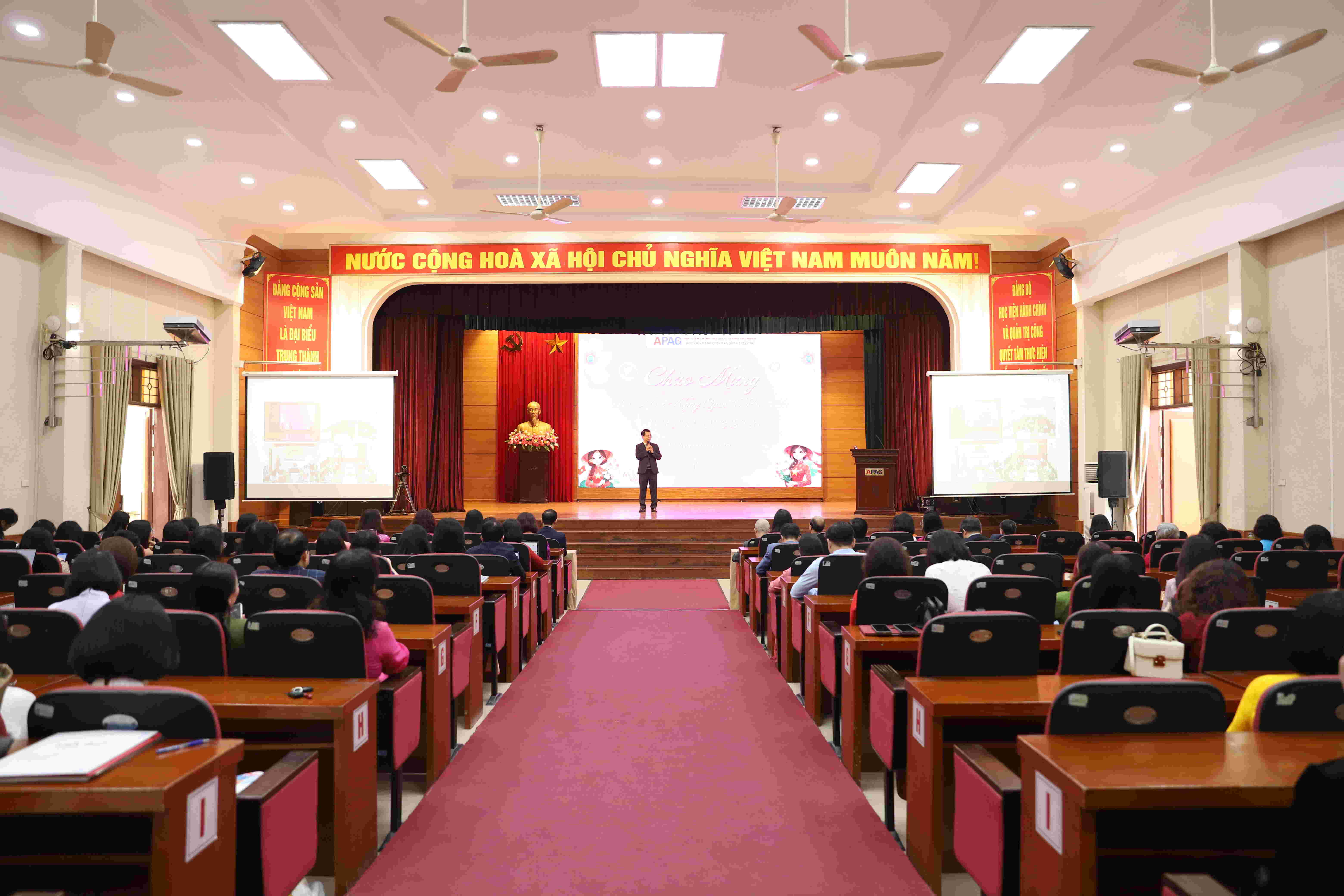 Buổi gặp mặt diễn ra trong không khí trang trọng, ấm áp và thân tình, thể hiện sự quan tâm của Đảng ủy, Ban Giám đốc Học viện đối với đội ngũ nữ giảng viên, viên chức và người lao động. Đây cũng là dịp để cán bộ, viên chức giao lưu, chia sẻ, tăng cường sự gắn kết trong tập thể, góp phần xây dựng Học viện Hành chính và Quản trị công ngày càng phát triển.
