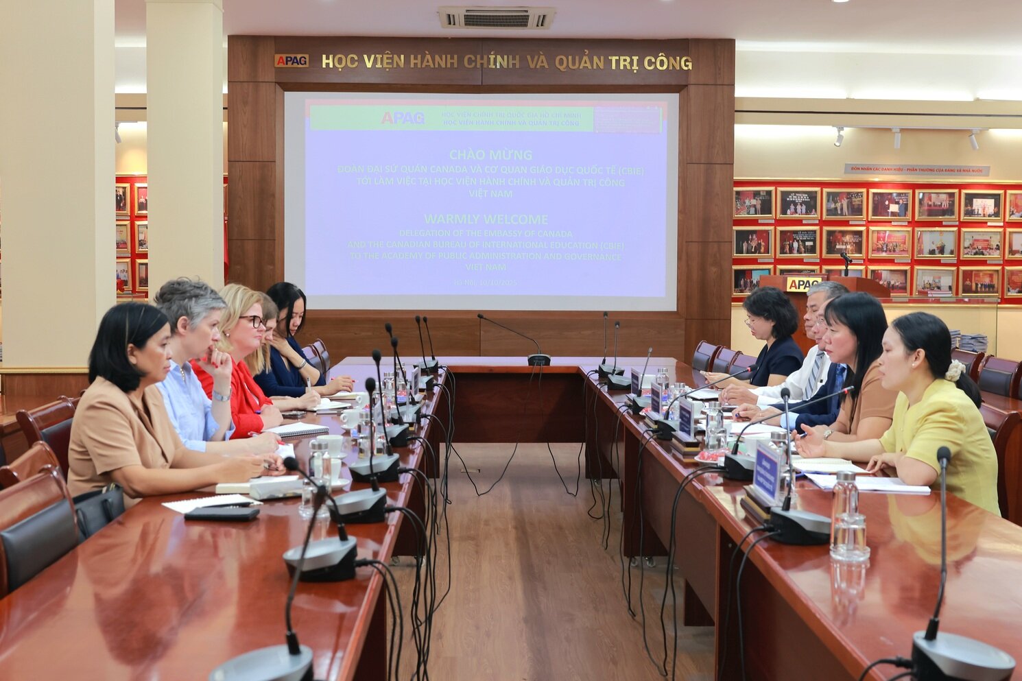 (apag.edu.vn) – Sáng ngày 10/10/2025, tại Hà Nội, PGS.TS. Nguyễn Bá Chiến, Giám đốc Học viện Hành chính và Quản trị công chủ trì buổi làm việc với đoàn công tác Đại sứ quán Canada và Cơ quan Giáo dục quốc tế Canada (CBIE) do bà Karen Dalkie, Phó Giám đốc phụ trách phát triển và quan hệ đối tác của CBIE làm Trưởng đoàn.