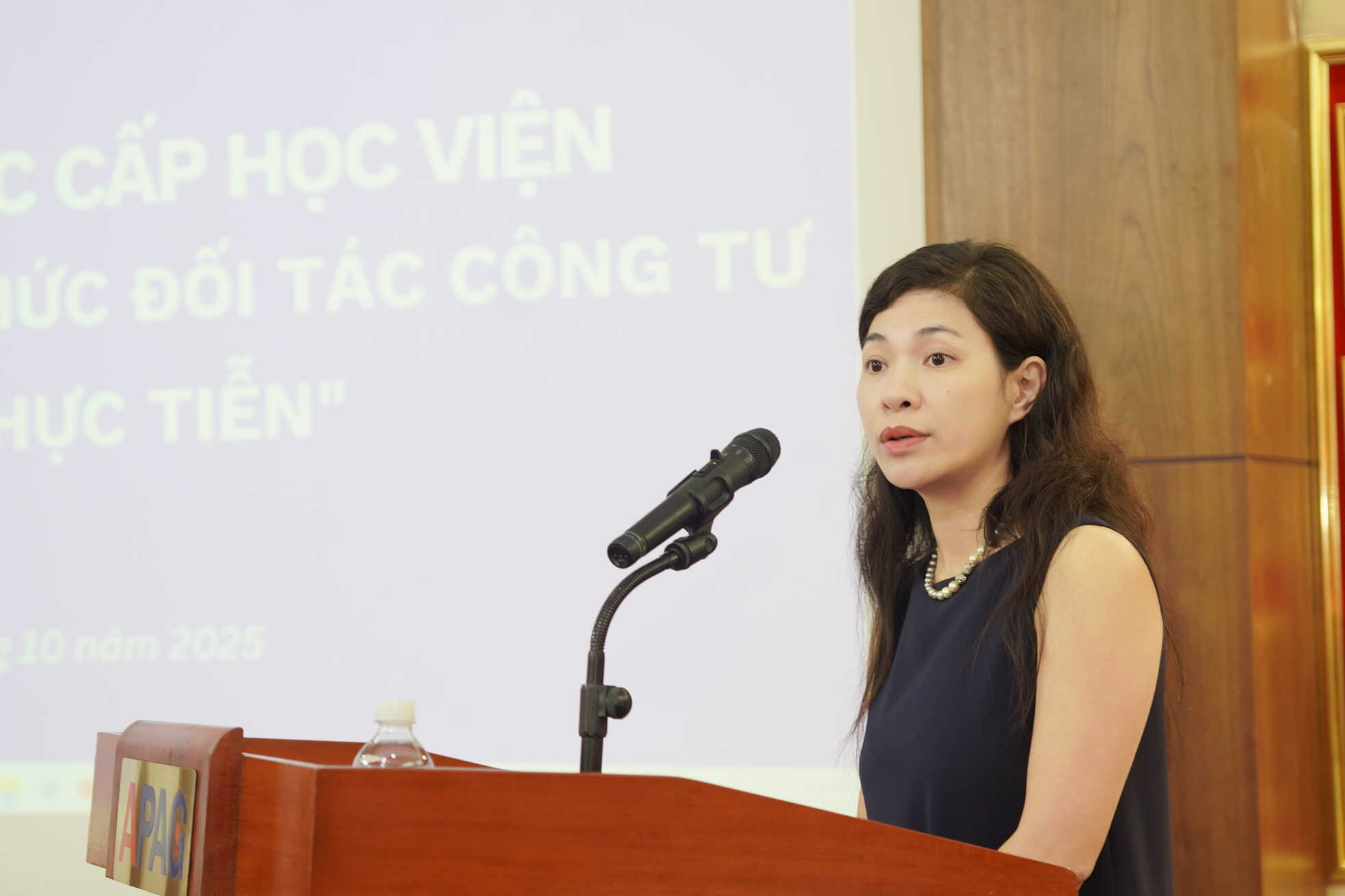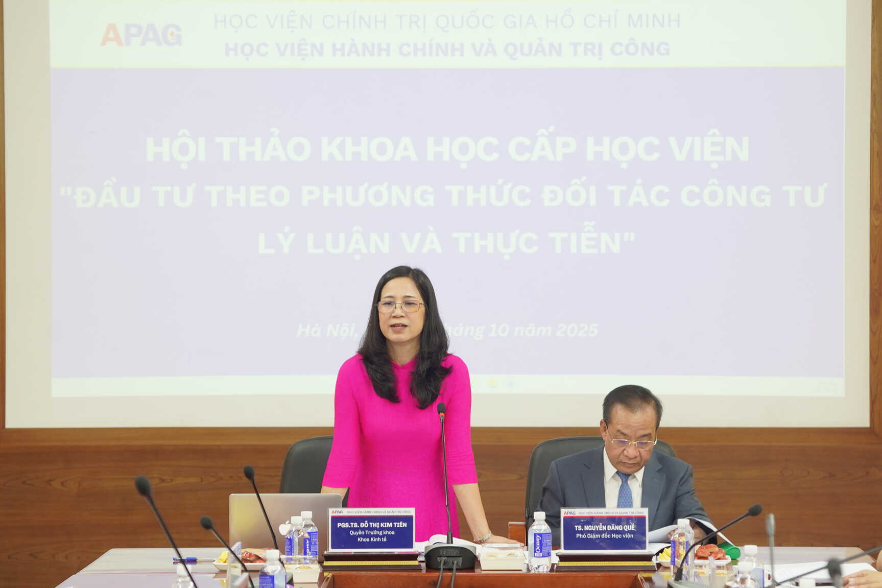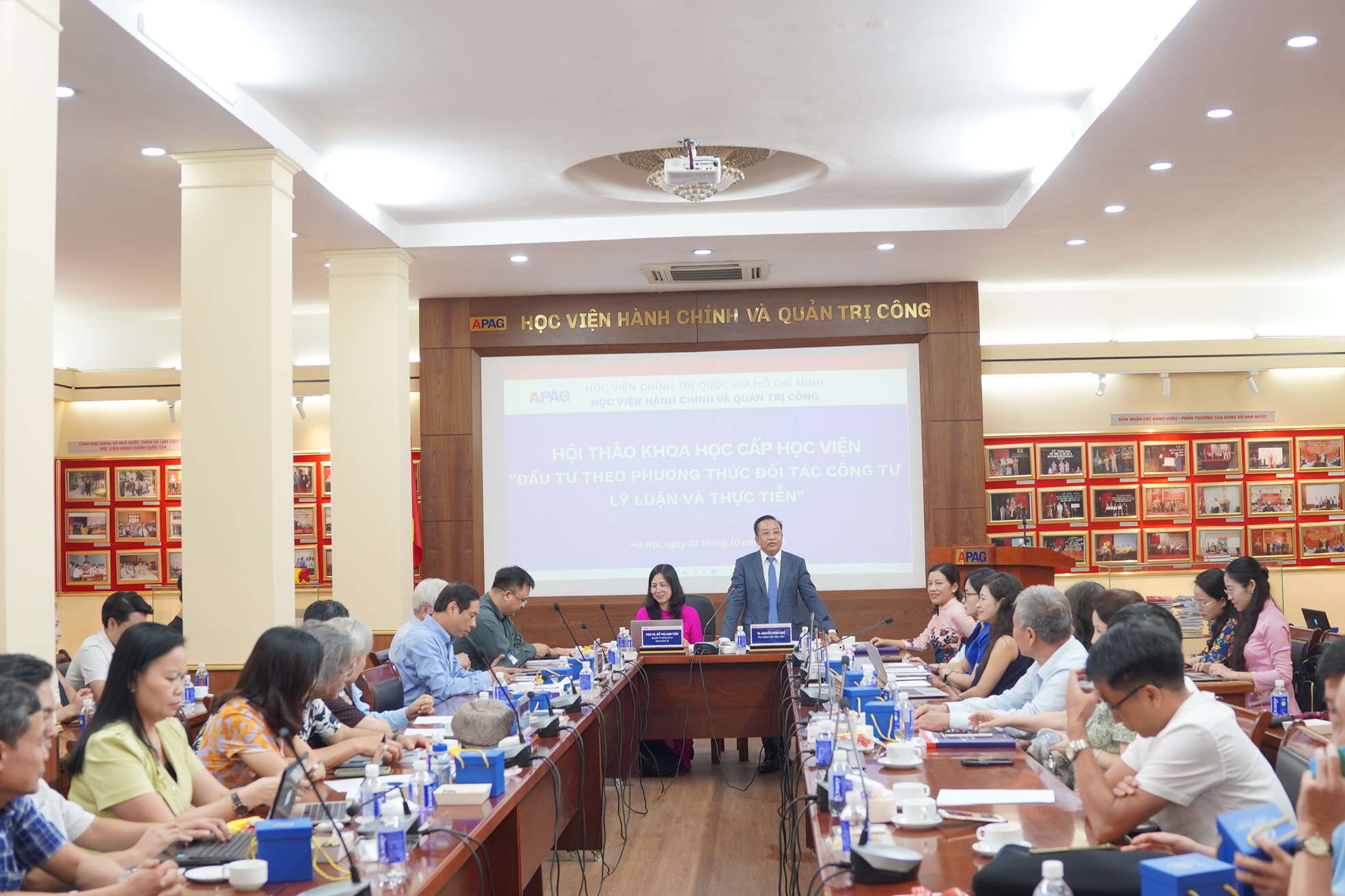 (apag.edu.vn) - Chiều ngày 01/10/2025, tại Phòng truyền thống, Học viện Hành chính và Quản trị công đã tổ chức Hội thảo khoa học cấp Học viện với chủ đề: “Đầu tư theo phương thức đối tác công – tư Lý luận và Thực tiễn”. Hội thảo do TS. Nguyễn Đăng Quế - Phó Giám đốc Học viện Hành chính và Quản trị công và PGS.TS. Đỗ Thị Kim Tiên - Quyền Trưởng Khoa Kinh tế, Học viện Hành chính và Quản trị công đồng chủ trì.