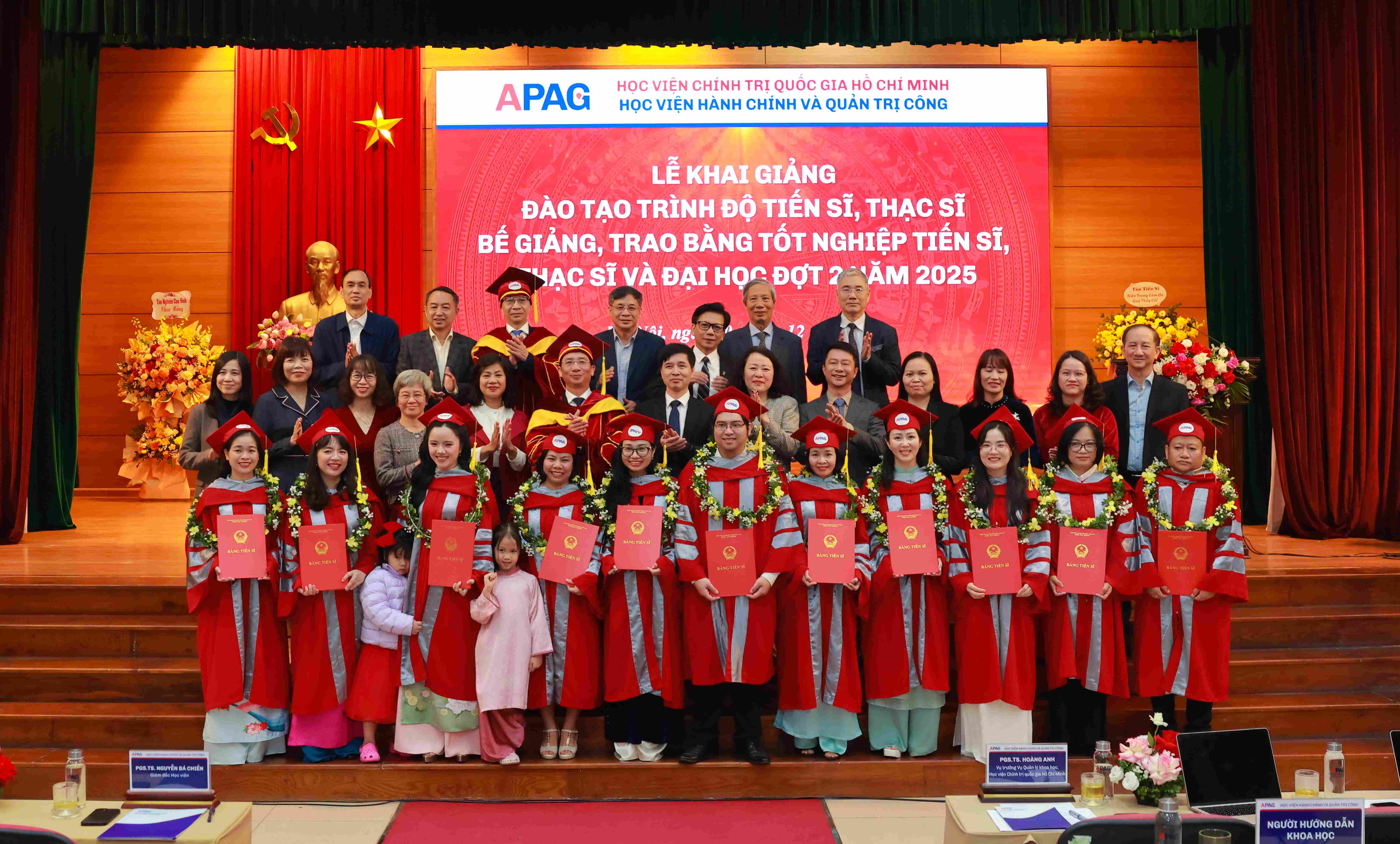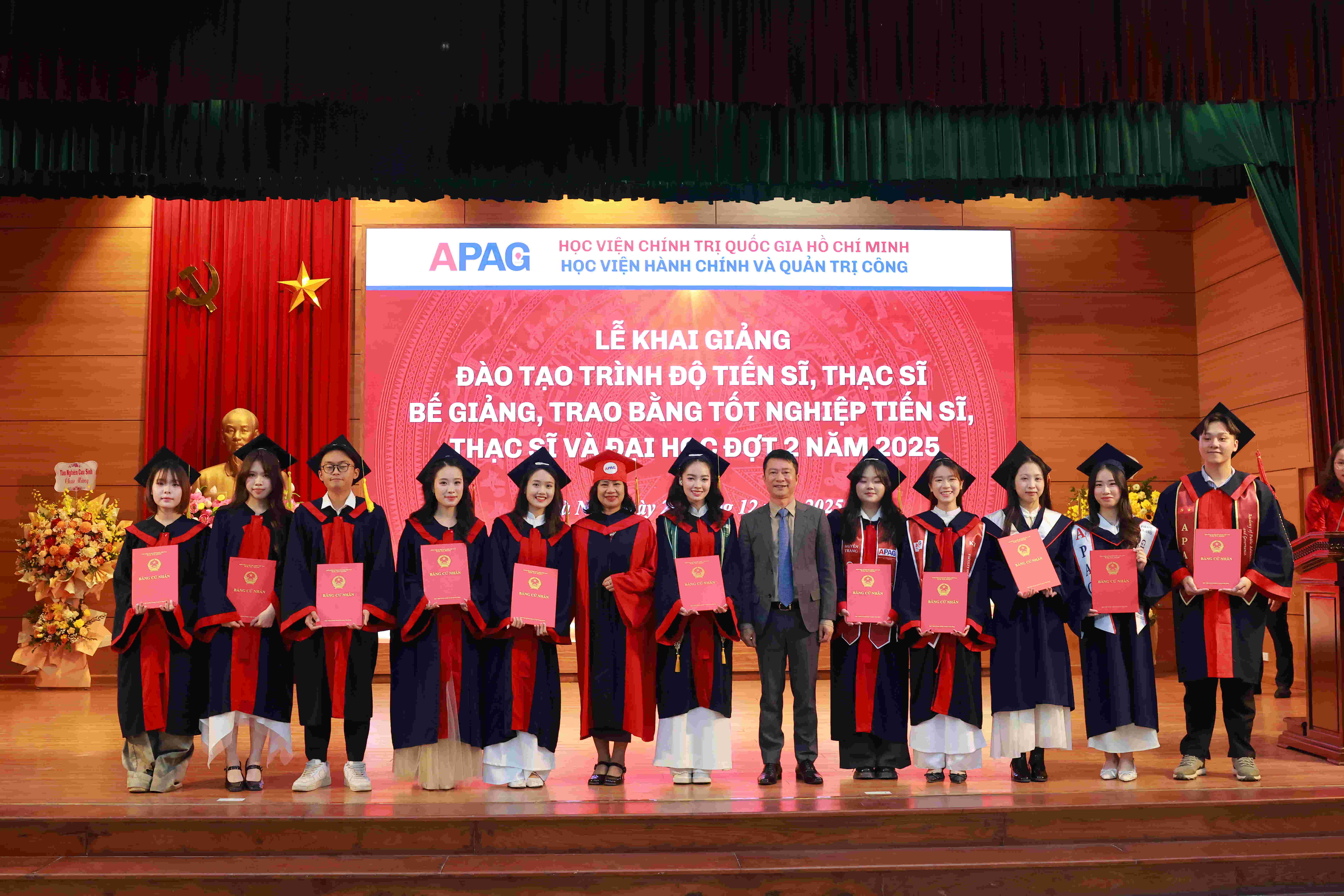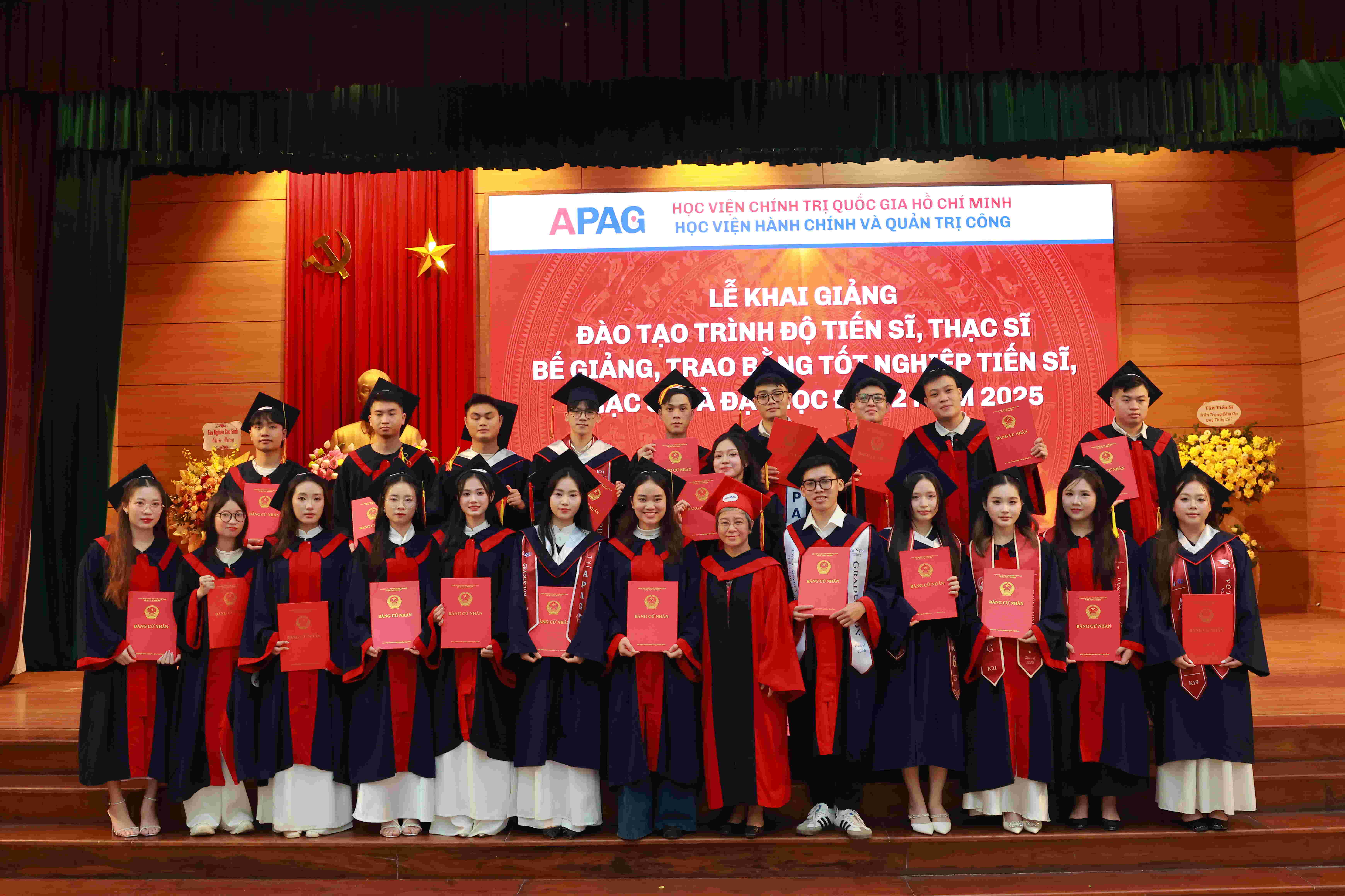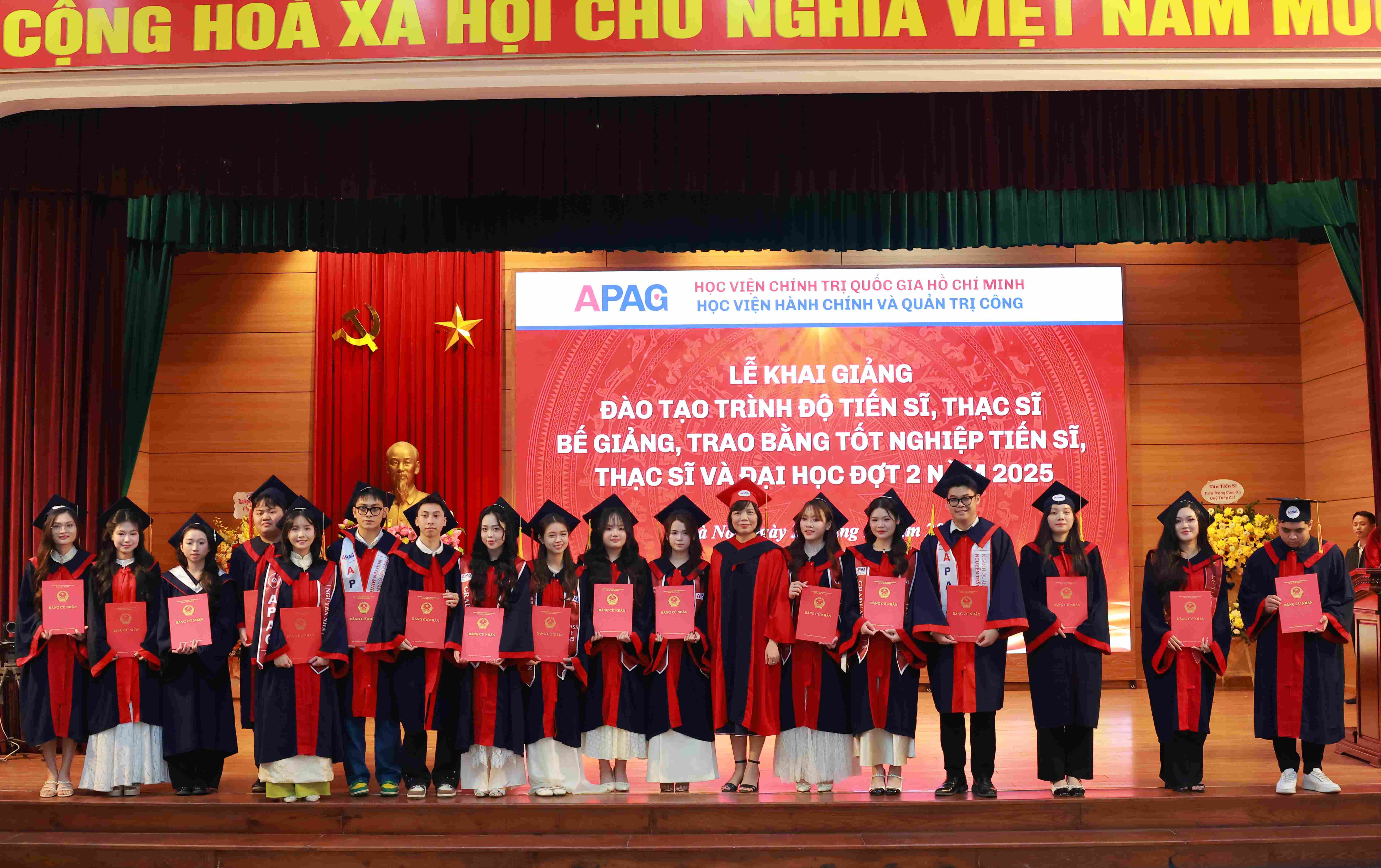(apag.edu.vn) - Sáng ngày 20/12/2025, trong không khí trang trọng, phấn khởi và đầy ý nghĩa, Học viện Hành chính và Quản trị công trang trọng tổ chức Lễ Khai giảng đào tạo trình độ tiến sĩ, thạc sĩ và Bế giảng, trao bằng tốt nghiệp tiến sĩ, thạc sĩ, đại học (đợt 2) năm 2025. Đây là sự kiện có ý nghĩa đặc biệt, đánh dấu những mốc son quan trọng trong hành trình học tập, nghiên cứu và trưởng thành của các thế hệ học viên, sinh viên, nghiên cứu sinh của Học viện.