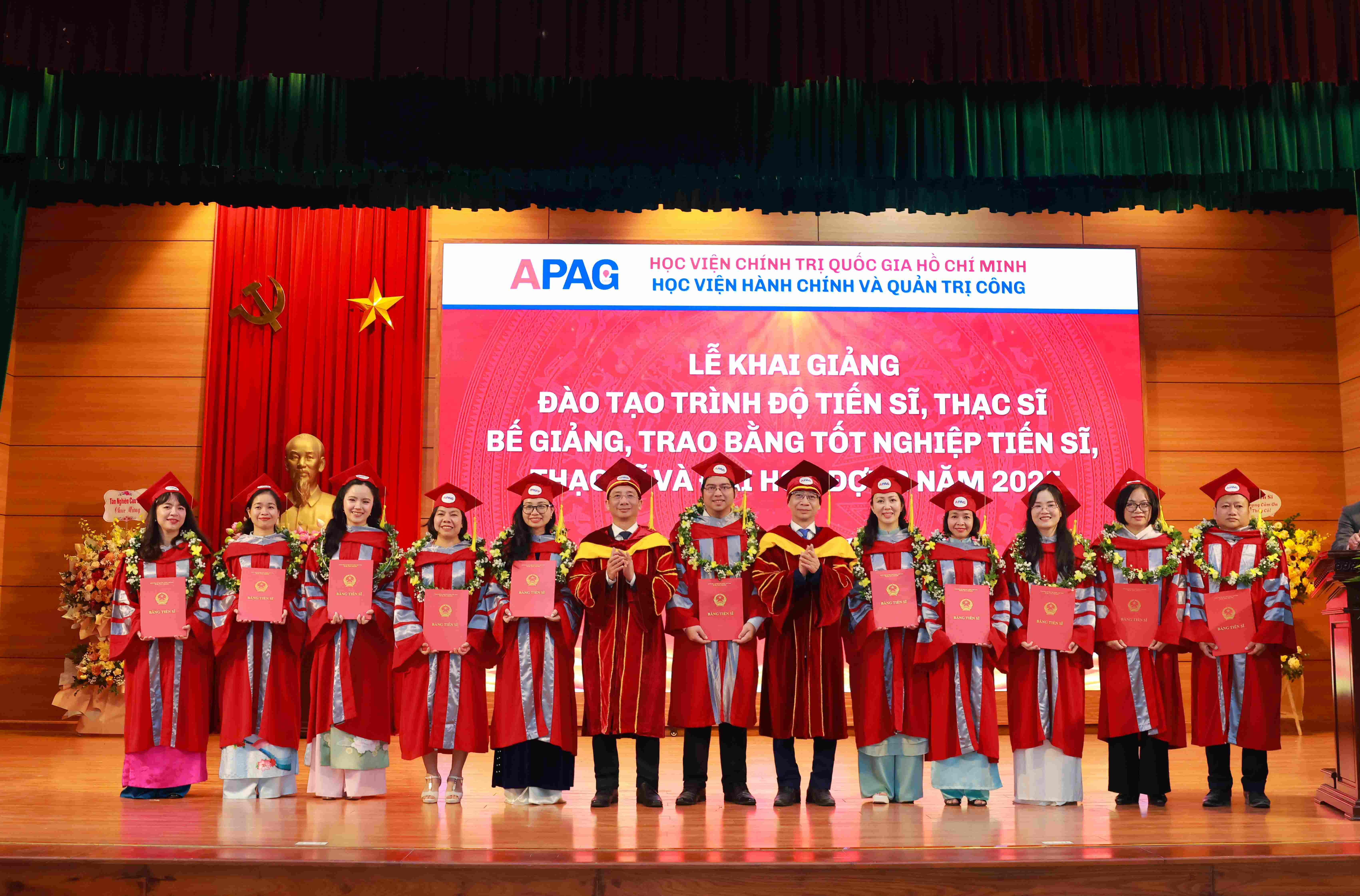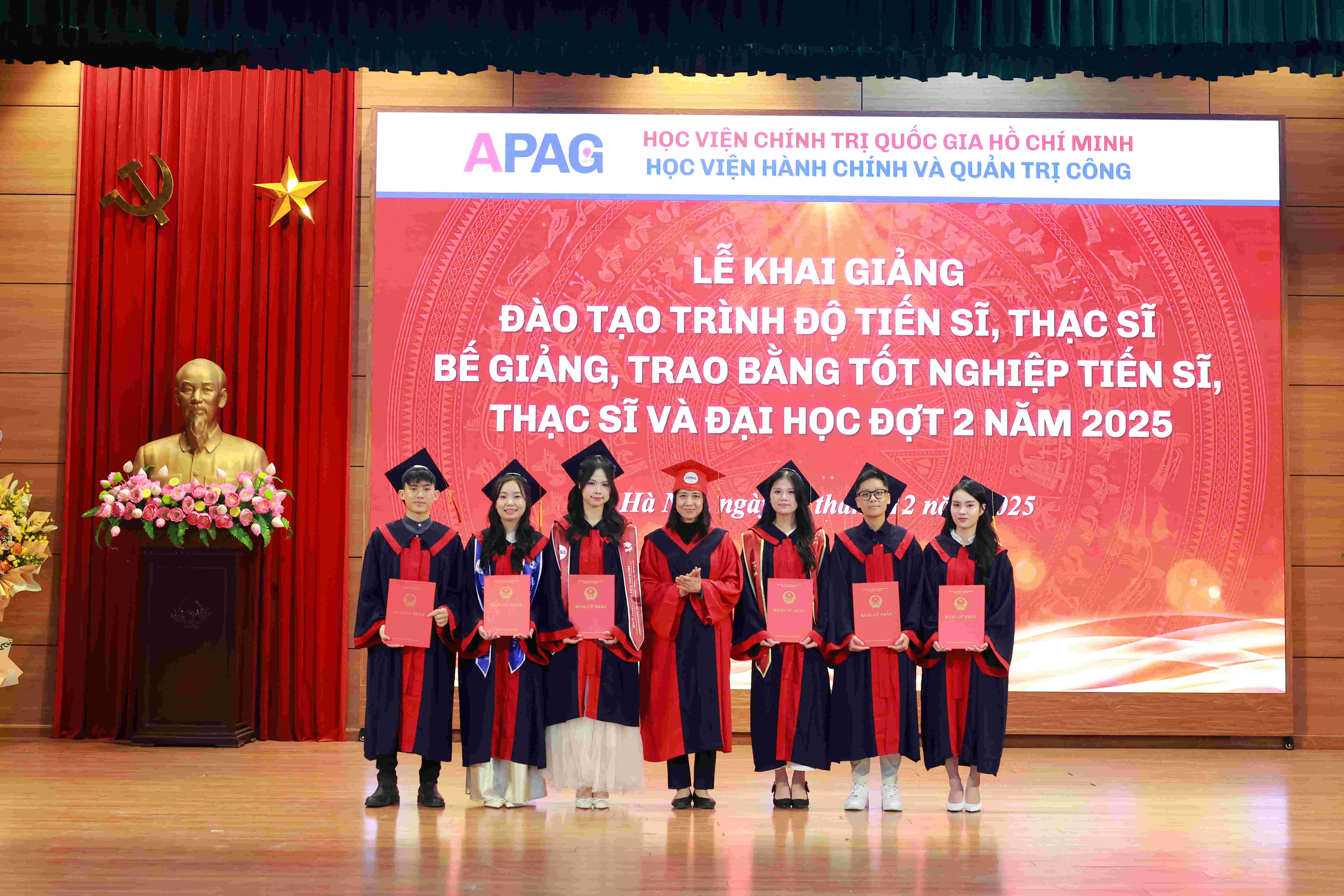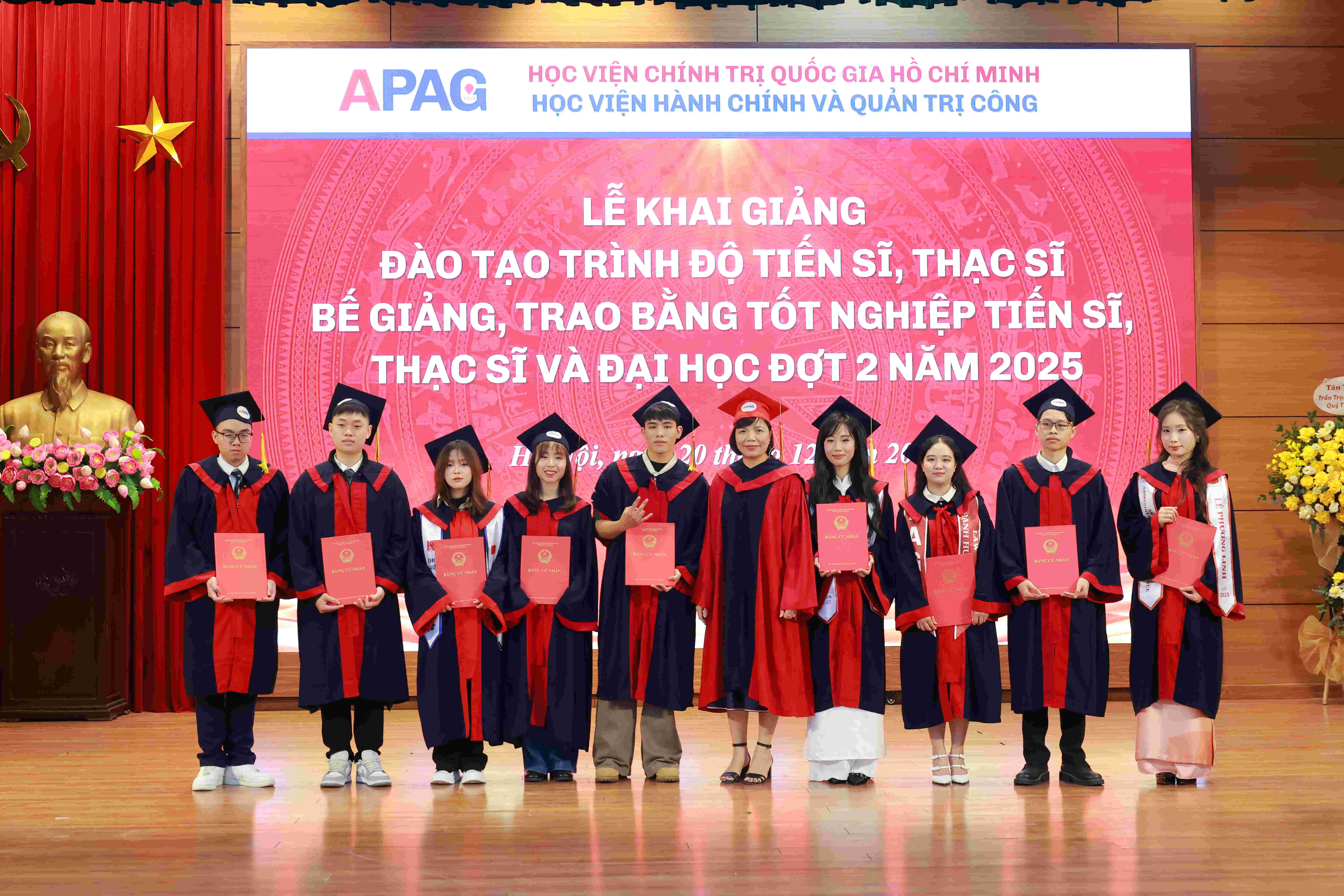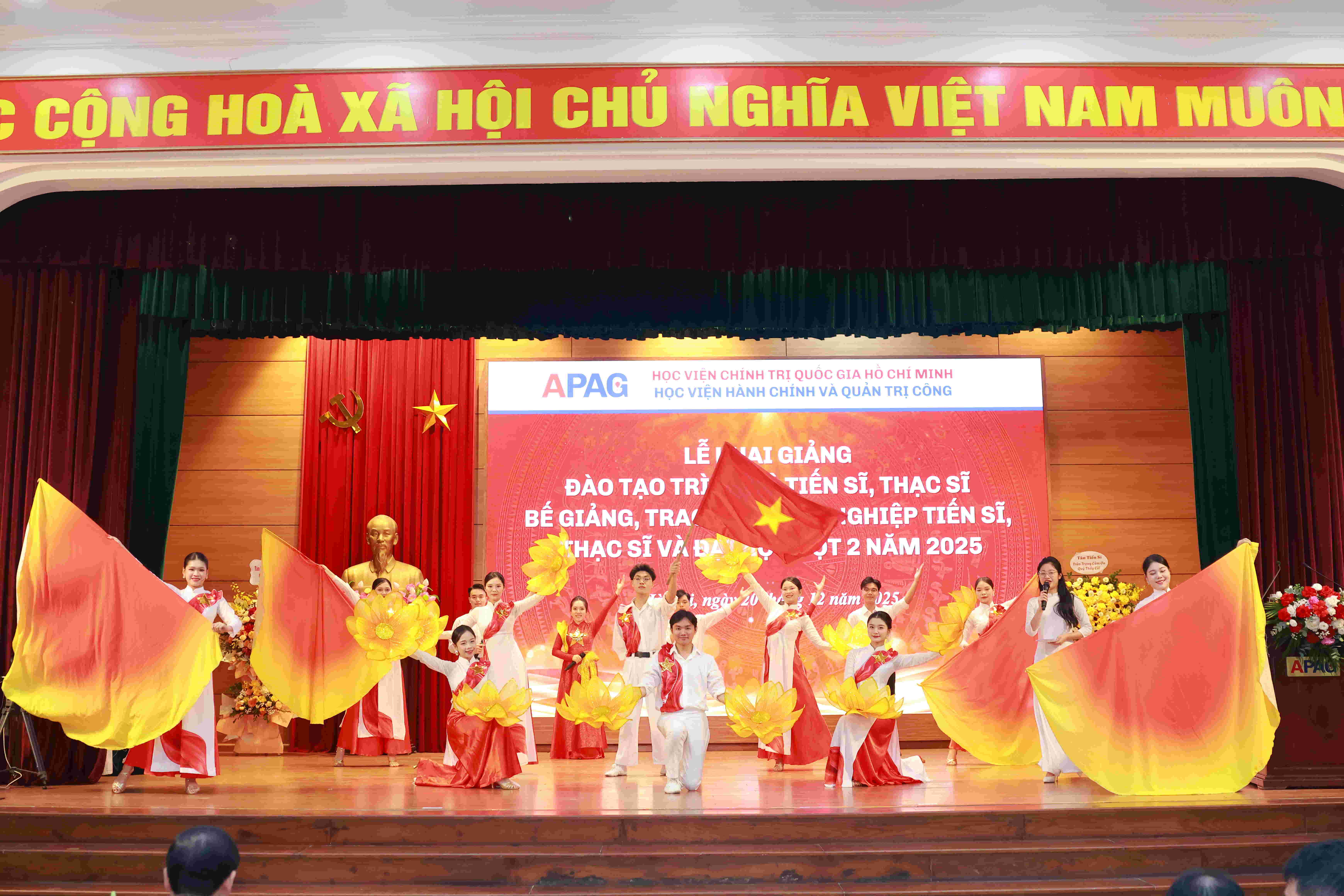 (apag.edu.vn) - Sáng ngày 20/12/2025, trong không khí trang trọng, phấn khởi và đầy ý nghĩa, Học viện Hành chính và Quản trị công trang trọng tổ chức Lễ Khai giảng đào tạo trình độ tiến sĩ, thạc sĩ và Bế giảng, trao bằng tốt nghiệp tiến sĩ, thạc sĩ, đại học (đợt 2) năm 2025. Đây là sự kiện có ý nghĩa đặc biệt, đánh dấu những mốc son quan trọng trong hành trình học tập, nghiên cứu và trưởng thành của các thế hệ học viên, sinh viên, nghiên cứu sinh của Học viện.