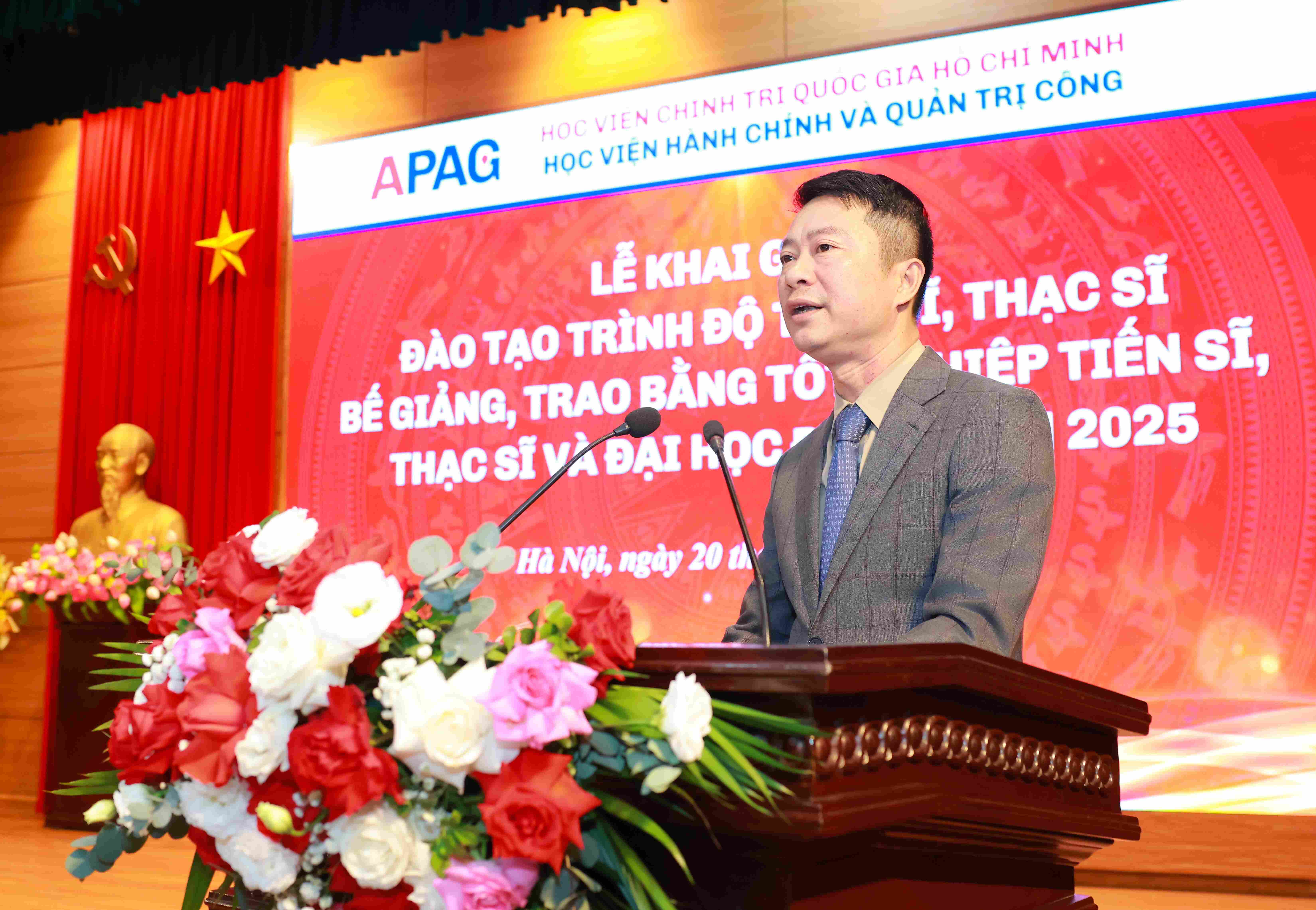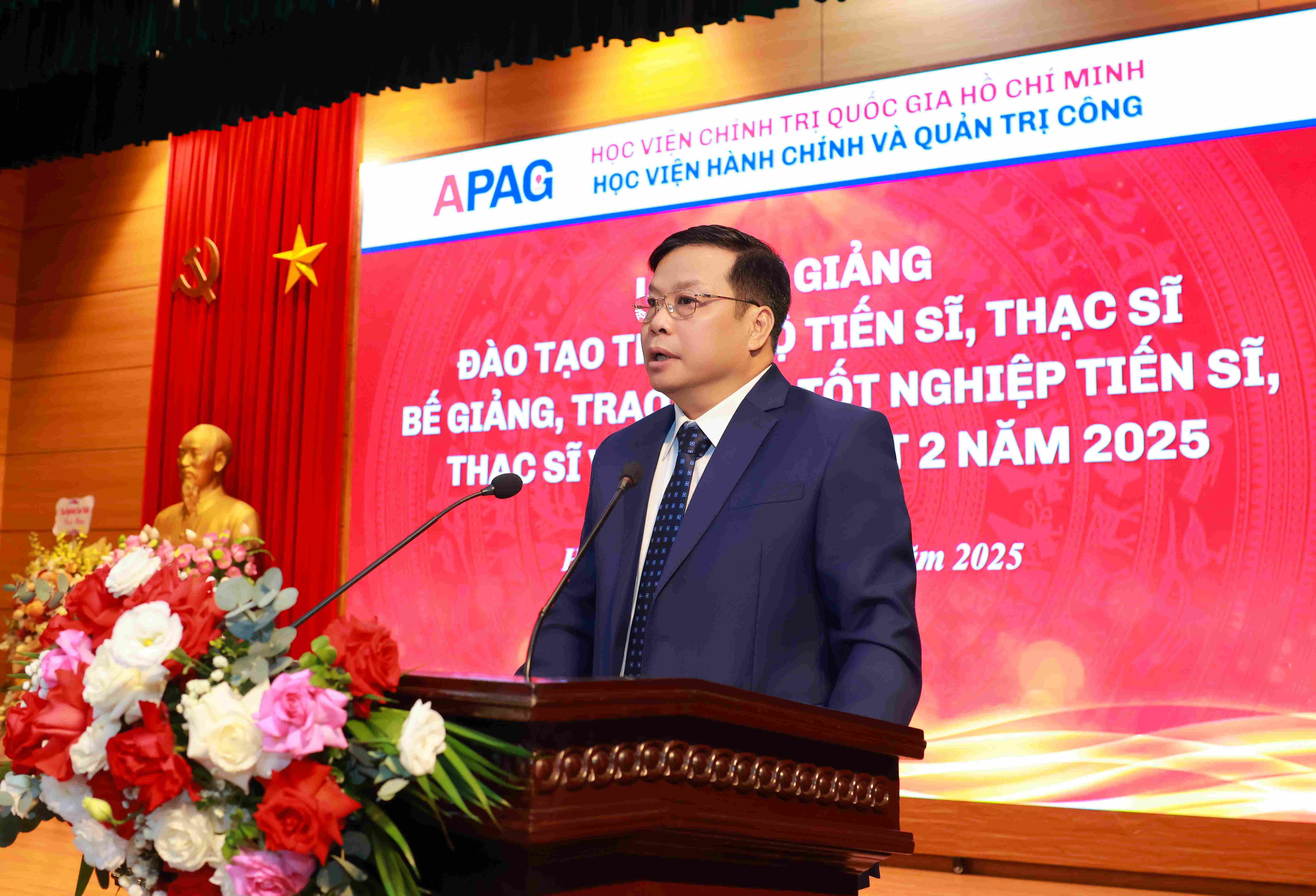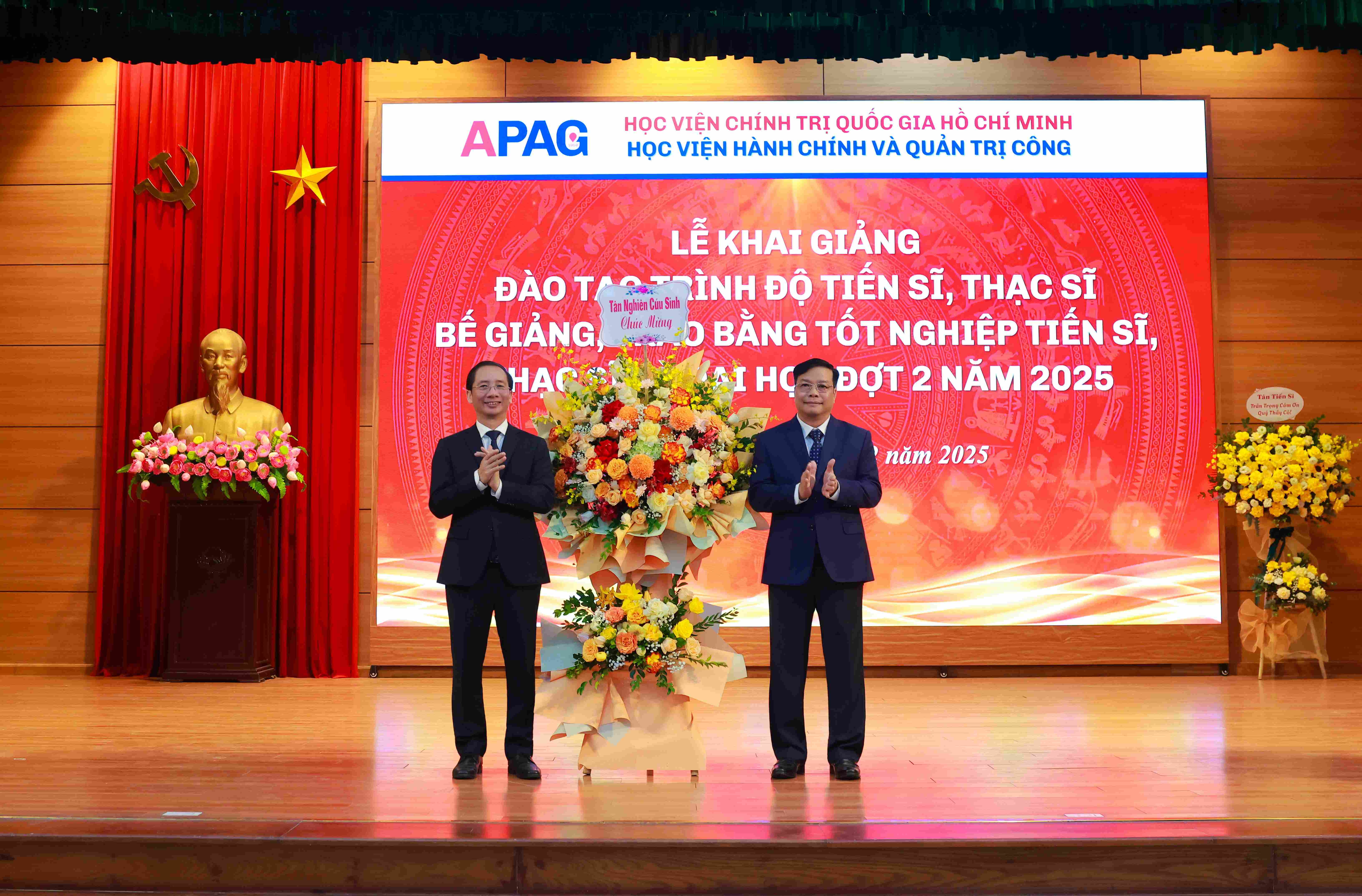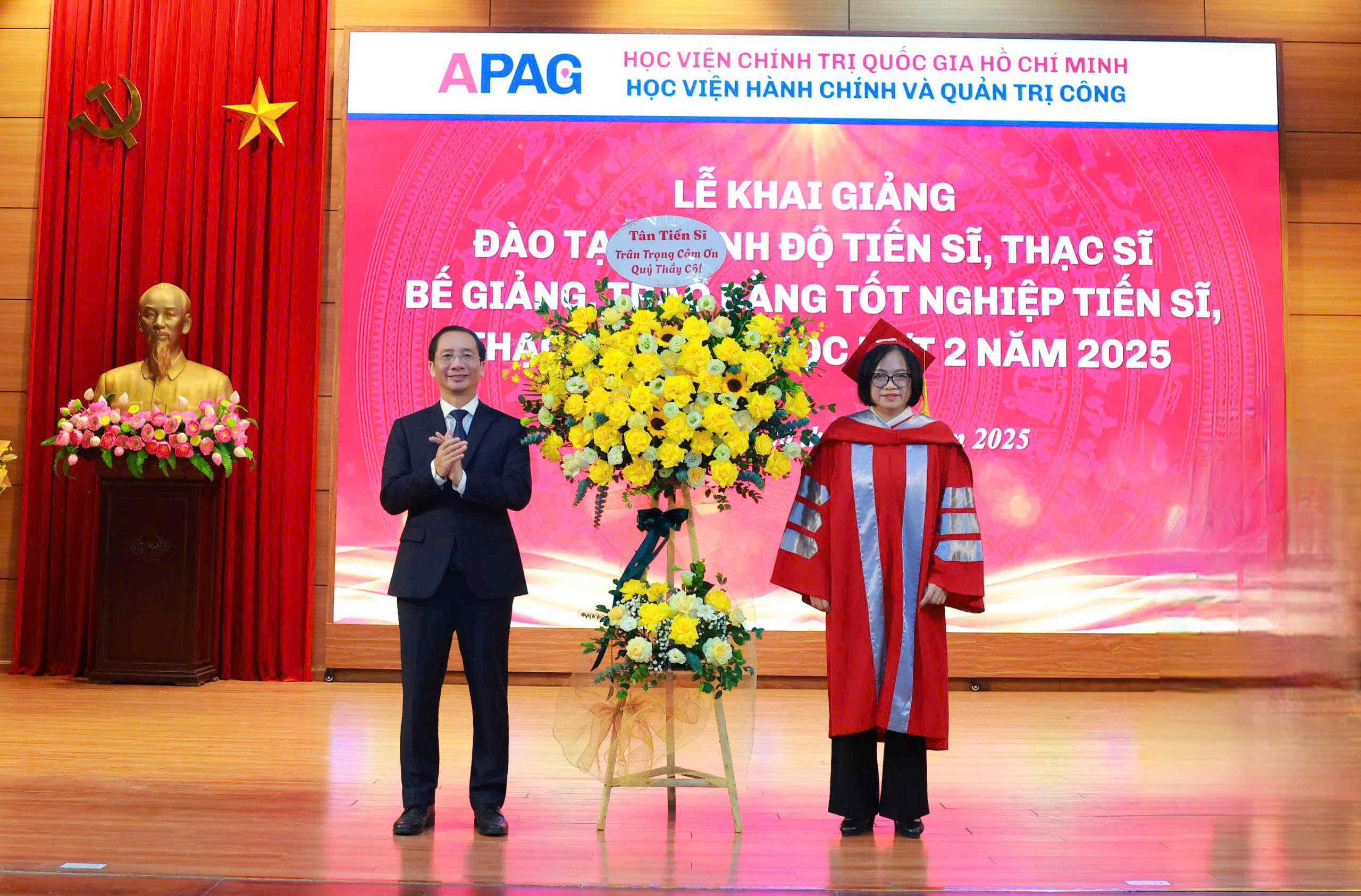 (apag.edu.vn) - Sáng ngày 20/12/2025, trong không khí trang trọng, phấn khởi và đầy ý nghĩa, Học viện Hành chính và Quản trị công trang trọng tổ chức Lễ Khai giảng đào tạo trình độ tiến sĩ, thạc sĩ và Bế giảng, trao bằng tốt nghiệp tiến sĩ, thạc sĩ, đại học (đợt 2) năm 2025. Đây là sự kiện có ý nghĩa đặc biệt, đánh dấu những mốc son quan trọng trong hành trình học tập, nghiên cứu và trưởng thành của các thế hệ học viên, sinh viên, nghiên cứu sinh của Học viện.