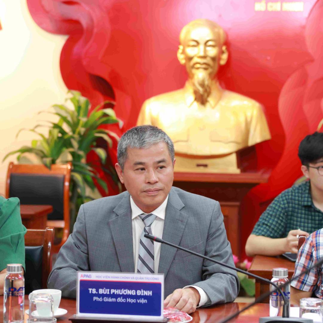Phát biểu chào mừng tại buổi làm việc, TS. Bùi Phương Đình - Phó Giám đốc Học viện bày tỏ niềm vui mừng và vinh dự khi được đón tiếp Đoàn đại biểu đến từ Học viện Hành chính Giang Tô - một cơ sở đào tạo và nghiên cứu lý luận chính trị hàng đầu của Trung Quốc. TS. Bùi Phương Đình cũng giới thiệu về Học viện Hành chính và Quản trị công và mong muốn chuyến thăm lần này sẽ là hoạt động ý nghĩa, góp phần tăng cường mối quan hệ hợp tác, giao lưu học thuật và hiểu biết lẫn nhau giữa hai học viện, đồng thời mở ra nhiều cơ hội hợp tác trong lĩnh vực đào tạo, nghiên cứu và phát triển đội ngũ cán bộ hành chính công trong thời gian tới.