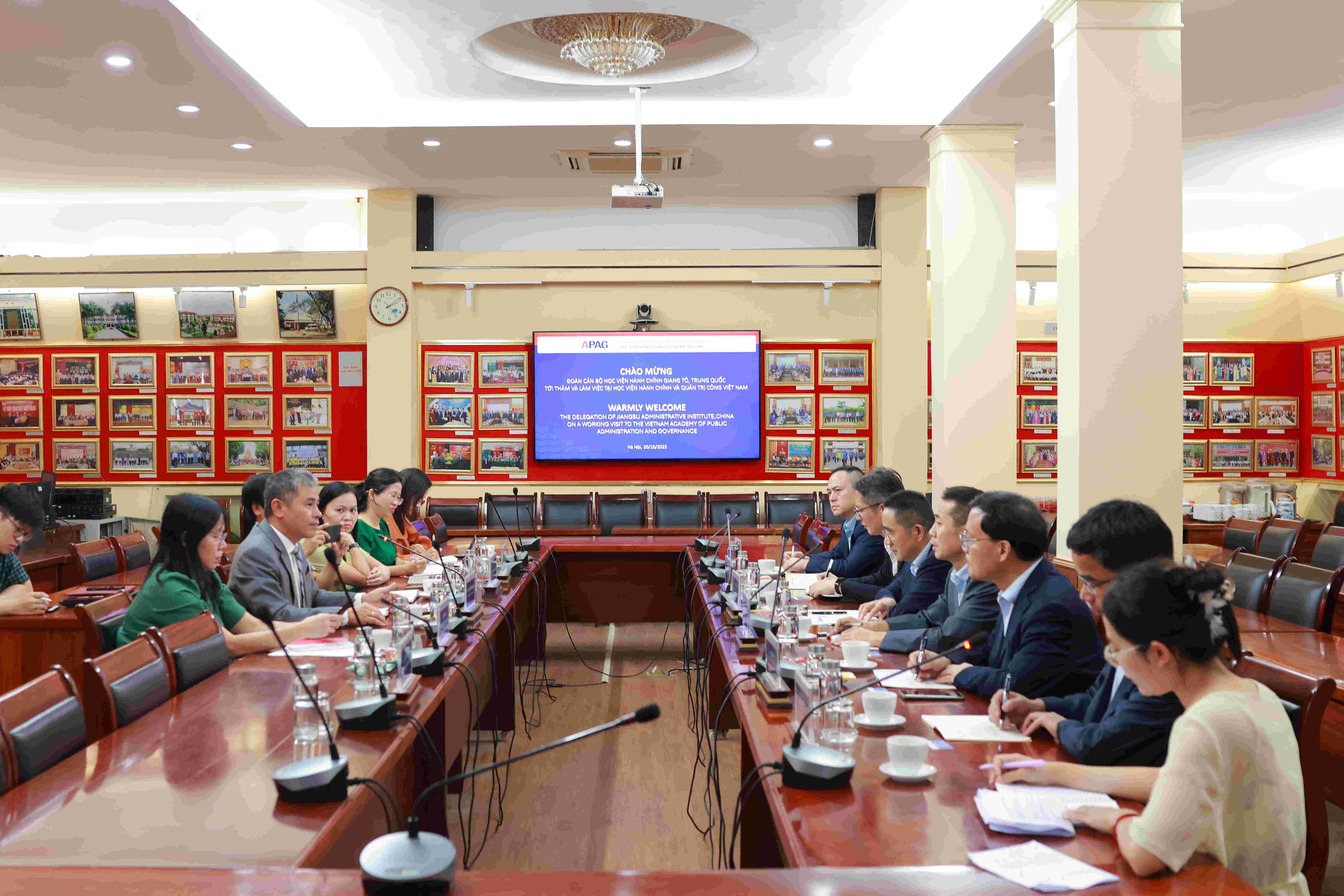 Buổi làm việc diễn ra trong không khí trang trọng, hữu nghị và cởi mở, nhằm tăng cường quan hệ hợp tác, trao đổi học thuật và chia sẻ kinh nghiệm trong công tác đào tạo, bồi dưỡng cán bộ giữa hai học viện.