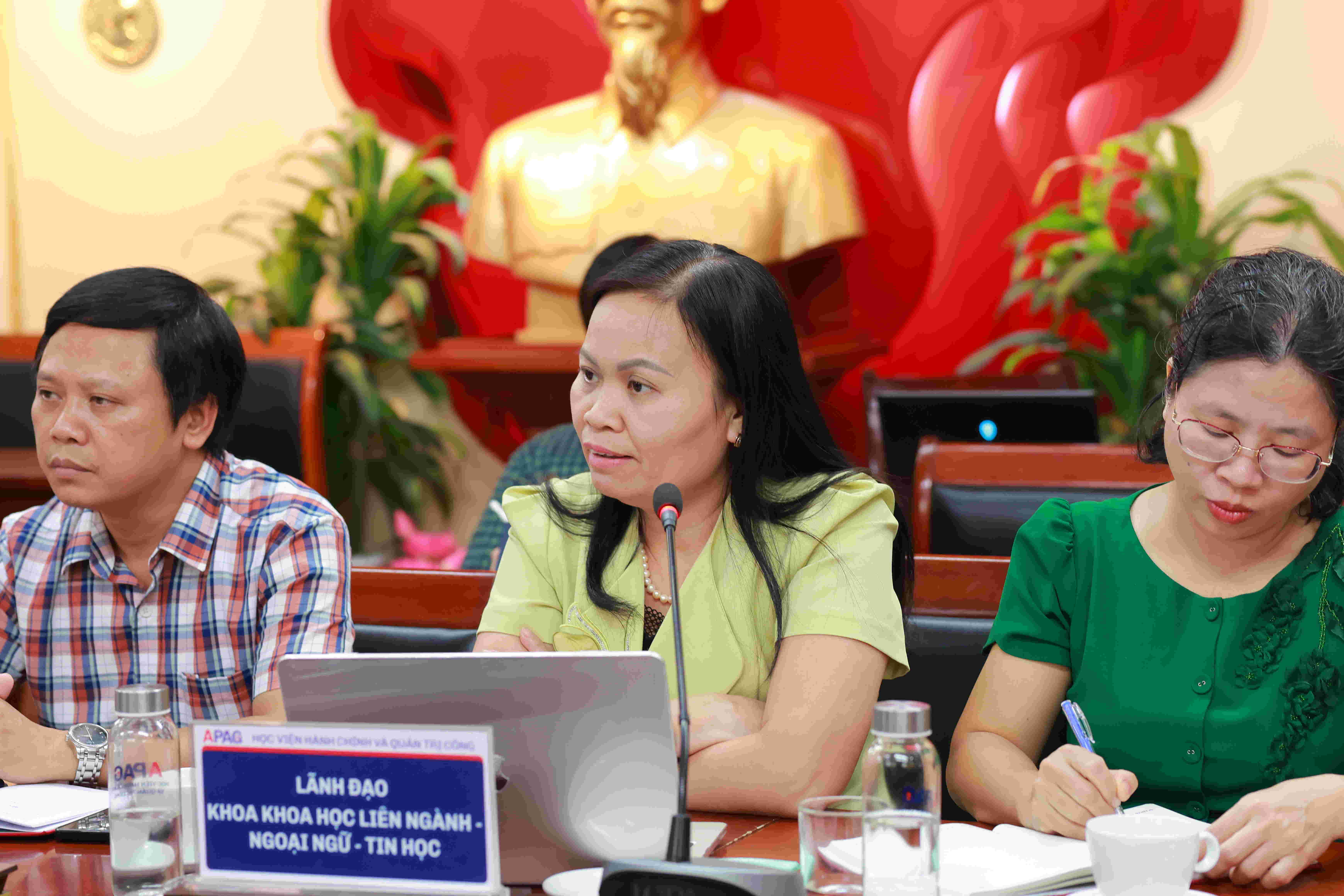 PGS.TS. Nguyễn Thị Thu Hà, Trưởng khoa, Khoa Khoa học liên ngành - Ngoại ngữ - Tin học phát biểu tại buổi làm việc.