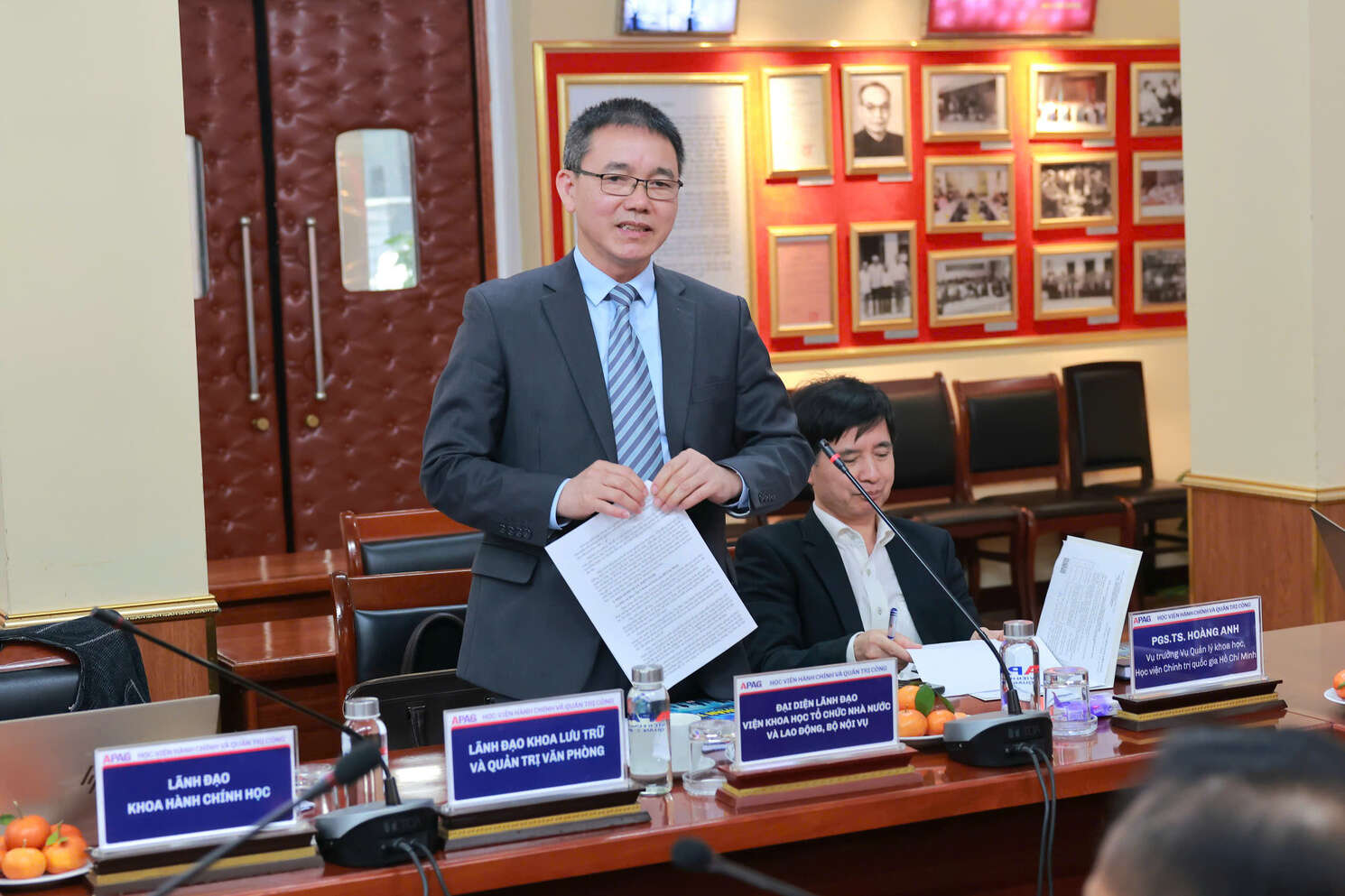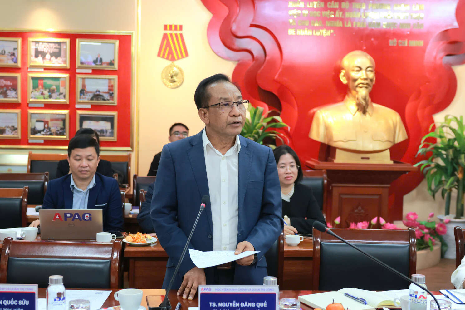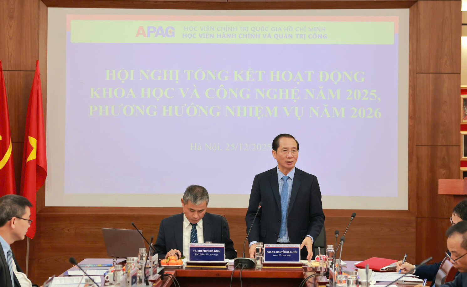 (apag.edu.vn) - Sáng ngày 25/12/2025, Học viện Hành chính và Quản trị công tổ chức Hội nghị Tổng kết hoạt động khoa học và công nghệ năm 2025 và đề ra phương hướng nhiệm vụ năm 2026. PGS.TS. Nguyễn Bá Chiến, Bí thư Đảng ủy, Giám đốc Học viện Hành chính và Quản trị công và TS. Bùi Phương Đình, Phó Giám đốc Học viện đồng chủ trì Hội nghị. Hội nghị được tổ chức theo hình thức trực tiếp kết hợp trực tuyến đến các Phân hiệu của Học viện.