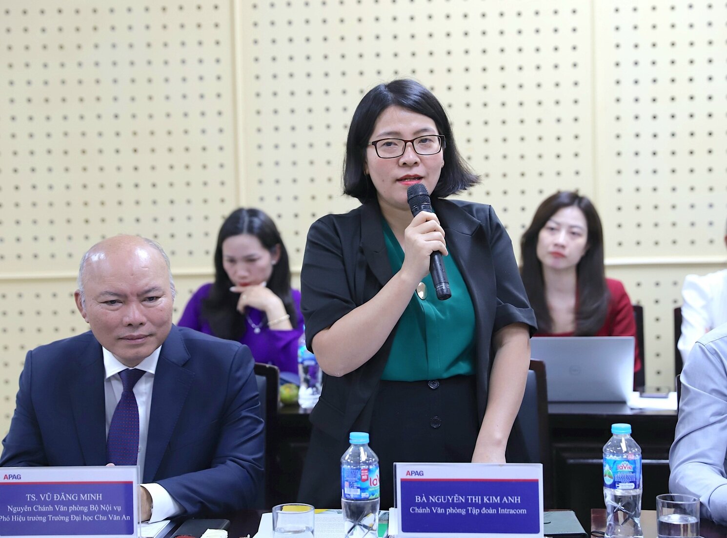 Bà Kim Anh nhấn mạnh, nguồn nhân lực này cần được đào tạo toàn diện: vững chuyên môn - thành thạo công nghệ - tinh thông quản trị. Người học không chỉ biết điều hành văn phòng mà còn phải hiểu chiến lược, tài chính, pháp lý và quản trị dữ liệu. Từ kinh nghiệm thực tiễn của Intracom, bà đề xuất Học viện nên tăng cường hợp tác doanh nghiệp, mở rộng mô-đun kỹ năng mềm, kỹ năng số và đào tạo ngoại ngữ chuyên ngành để đáp ứng mô hình “văn phòng số - doanh nghiệp thông minh” đang hình thành nhanh chóng.