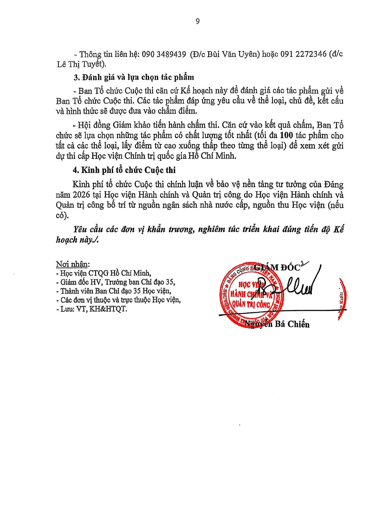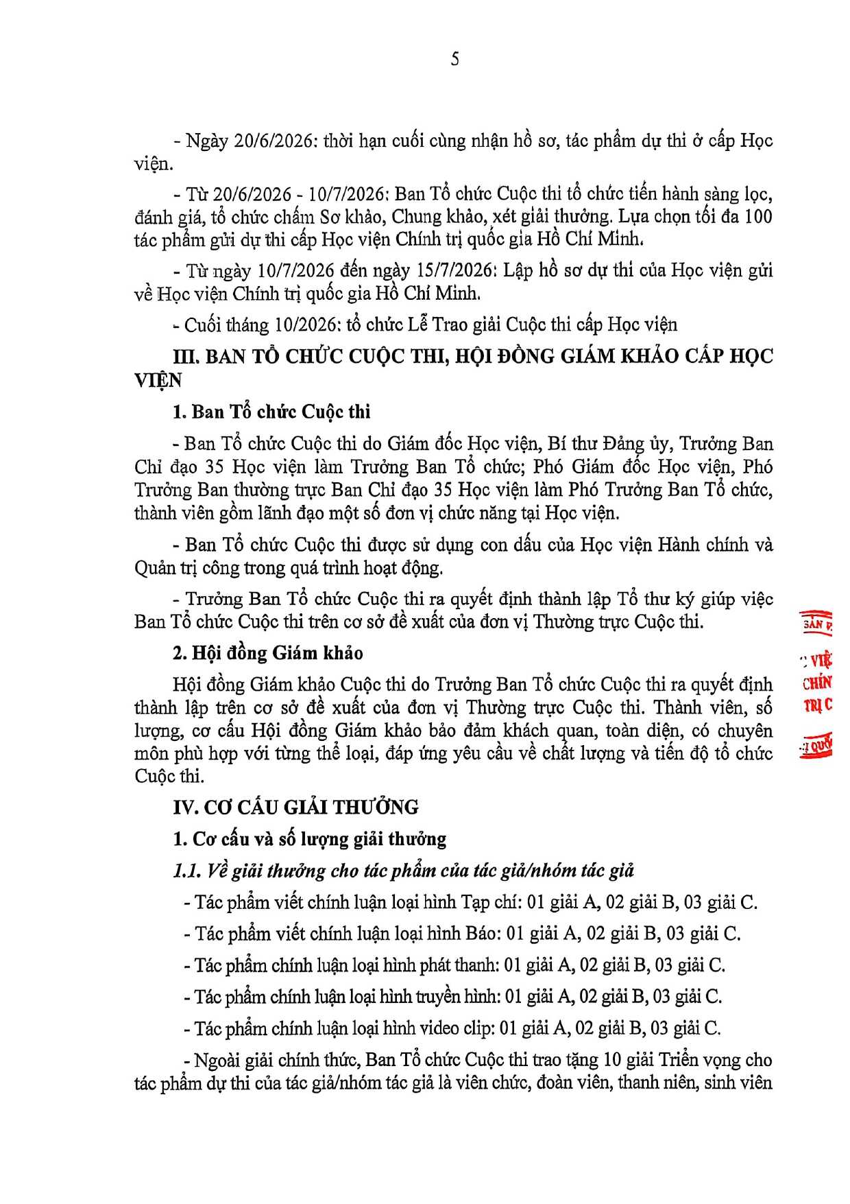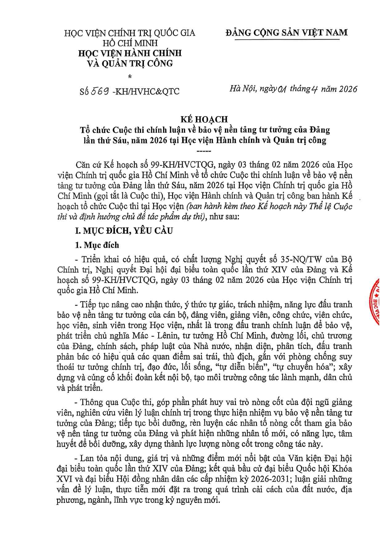 (apag.edu.vn) - Sáng ngày 05/02/2026, tại Hà Nội, thực hiện chỉ đạo của Ban Chỉ đạo 35 Trung ương, Học viện Chính trị quốc gia Hồ Chí Minh chủ trì, phối hợp với Ban Tuyên giáo và Dân vận Trung ương, Hội đồng Lý luận Trung ương, Tạp chí Cộng sản, Báo Nhân dân, Đài Truyền hình Việt Nam, Hội Nhà báo Việt Nam và Viện Hàn lâm Khoa học xã hội Việt Nam tổ chức họp báo triển khai Cuộc thi chính luận về bảo vệ nền tảng tư tưởng của Đảng lần thứ sáu, năm 2026 (Cuộc thi). Đồng chí Đoàn Minh Huấn, Ủy viên Bộ Chính trị, Giám đốc Học viện Chính trị quốc gia Hồ Chí Minh, Phó Trưởng Ban Chỉ đạo 35 Trung ương, Trưởng Ban Chỉ đạo Cuộc thi dự và chủ trì họp báo.