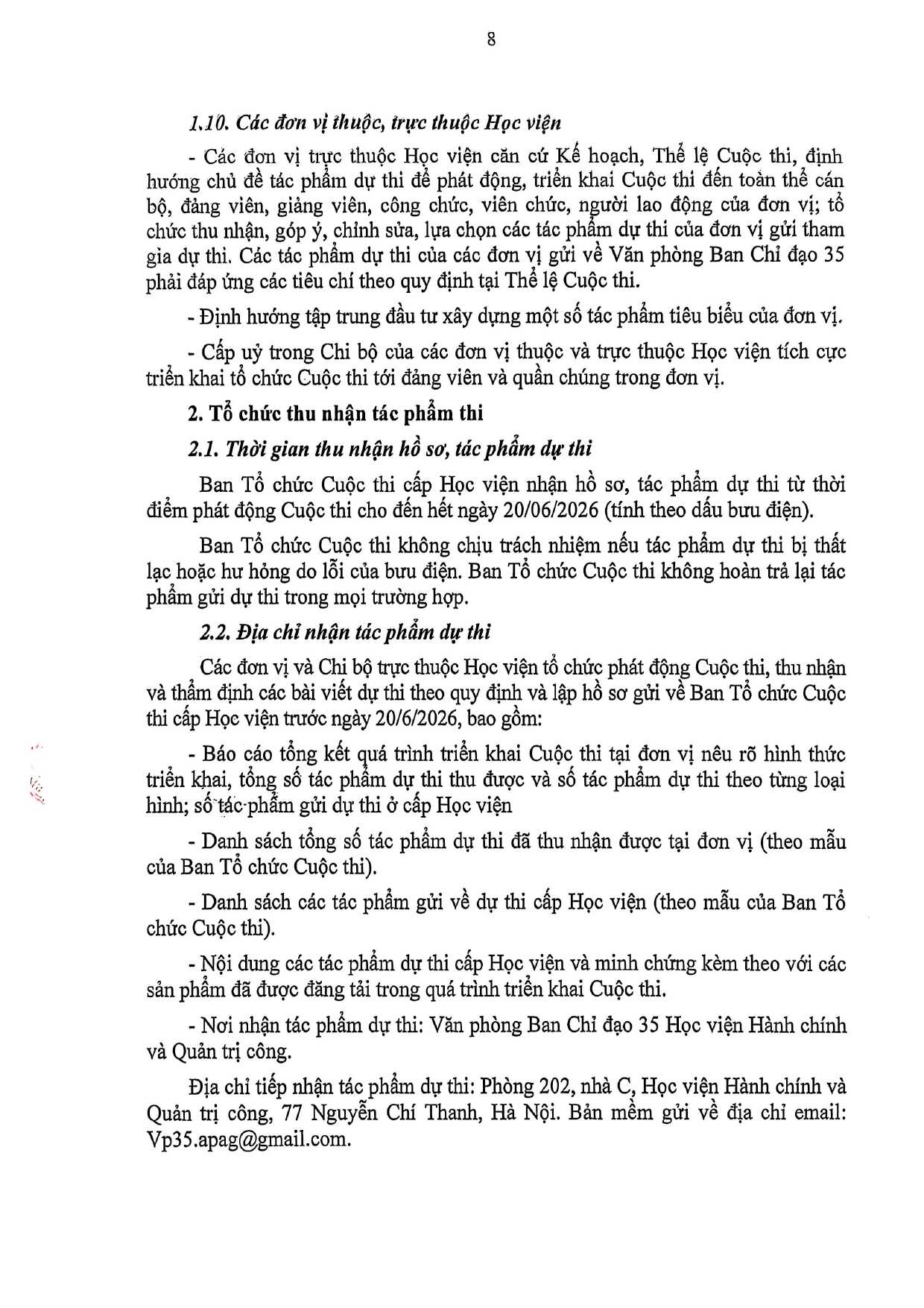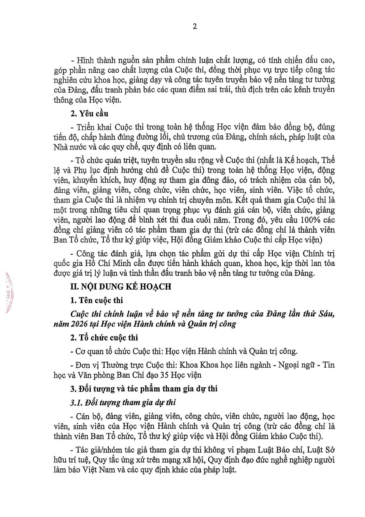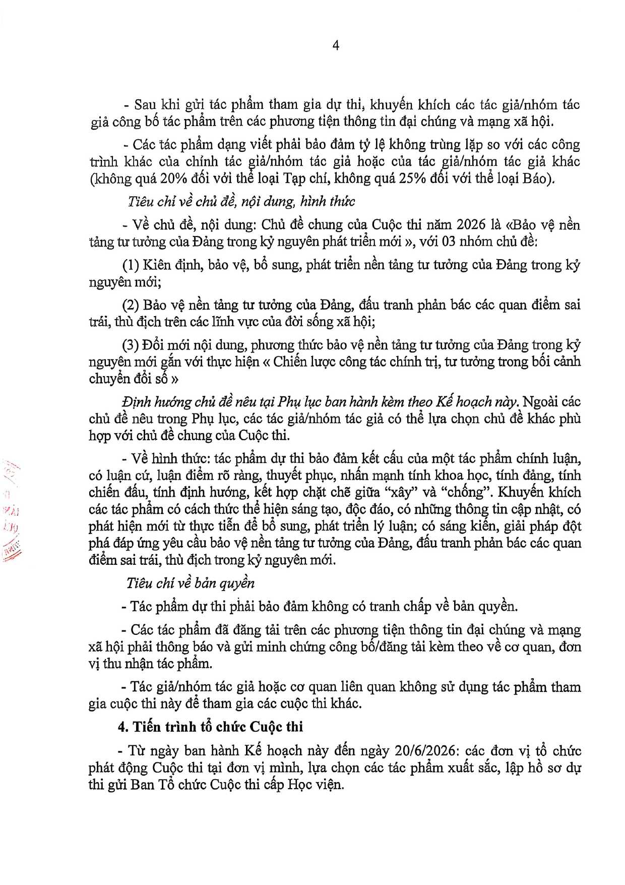 (apag.edu.vn) - Sáng ngày 05/02/2026, tại Hà Nội, thực hiện chỉ đạo của Ban Chỉ đạo 35 Trung ương, Học viện Chính trị quốc gia Hồ Chí Minh chủ trì, phối hợp với Ban Tuyên giáo và Dân vận Trung ương, Hội đồng Lý luận Trung ương, Tạp chí Cộng sản, Báo Nhân dân, Đài Truyền hình Việt Nam, Hội Nhà báo Việt Nam và Viện Hàn lâm Khoa học xã hội Việt Nam tổ chức họp báo triển khai Cuộc thi chính luận về bảo vệ nền tảng tư tưởng của Đảng lần thứ sáu, năm 2026 (Cuộc thi). Đồng chí Đoàn Minh Huấn, Ủy viên Bộ Chính trị, Giám đốc Học viện Chính trị quốc gia Hồ Chí Minh, Phó Trưởng Ban Chỉ đạo 35 Trung ương, Trưởng Ban Chỉ đạo Cuộc thi dự và chủ trì họp báo.