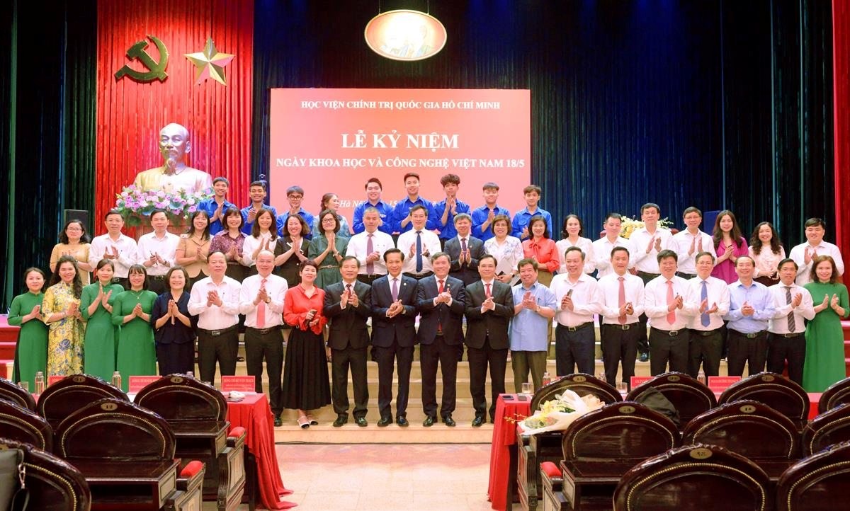 Sinh viên Khoa Hành chính học tham gia hỗ trợ Lễ kỷ niệm Ngày Khoa học và Công nghệ Việt Nam tại Học viện Chính trị Quốc gia Hồ Chí Minh