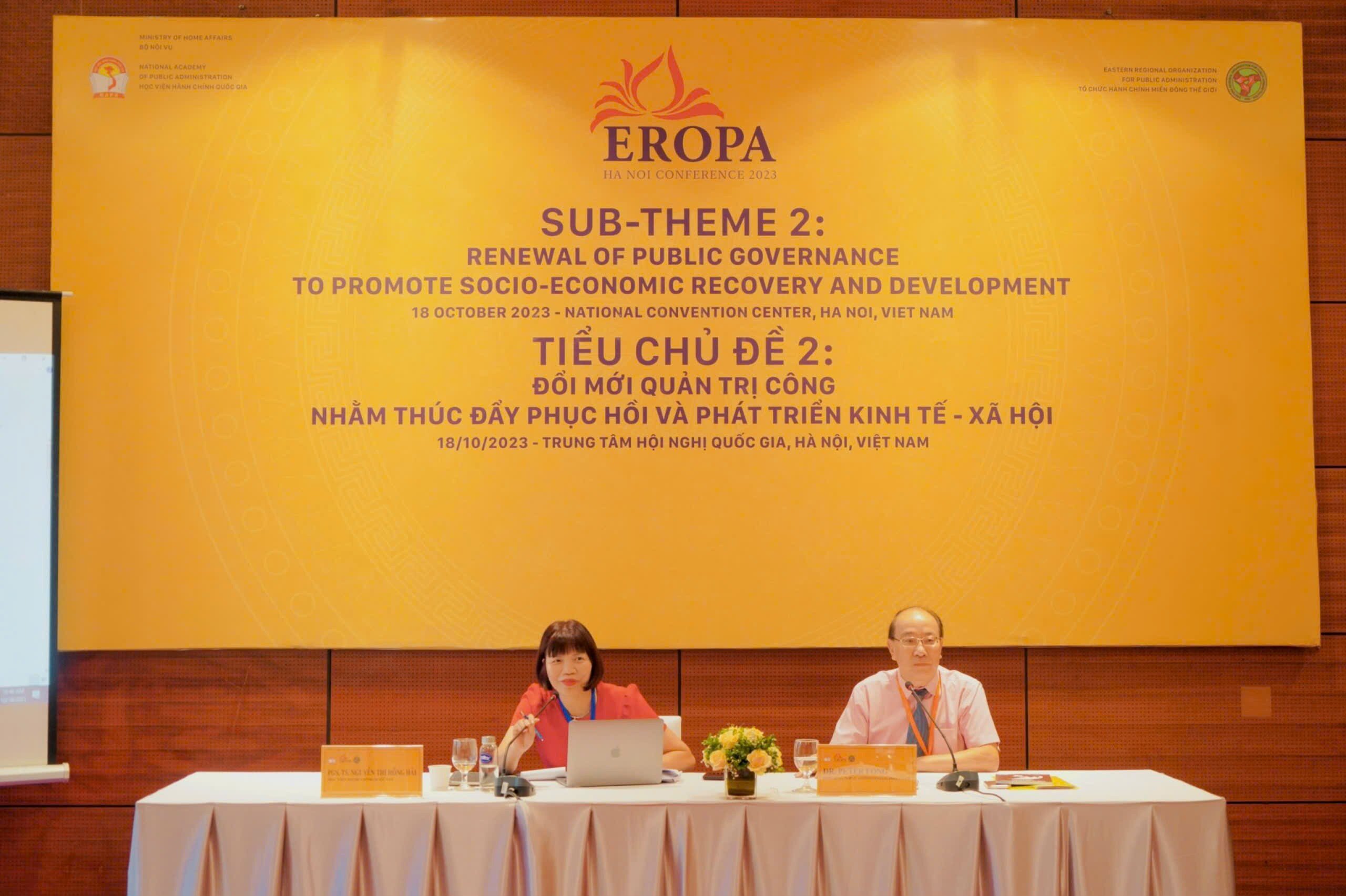 PGS.TS. Nguyễn Thị Hồng Hải, Trưởng khoa Hành chính học tham gia điều hành phiên thảo luận chuyên đề tại Hội nghị Eropa 2023