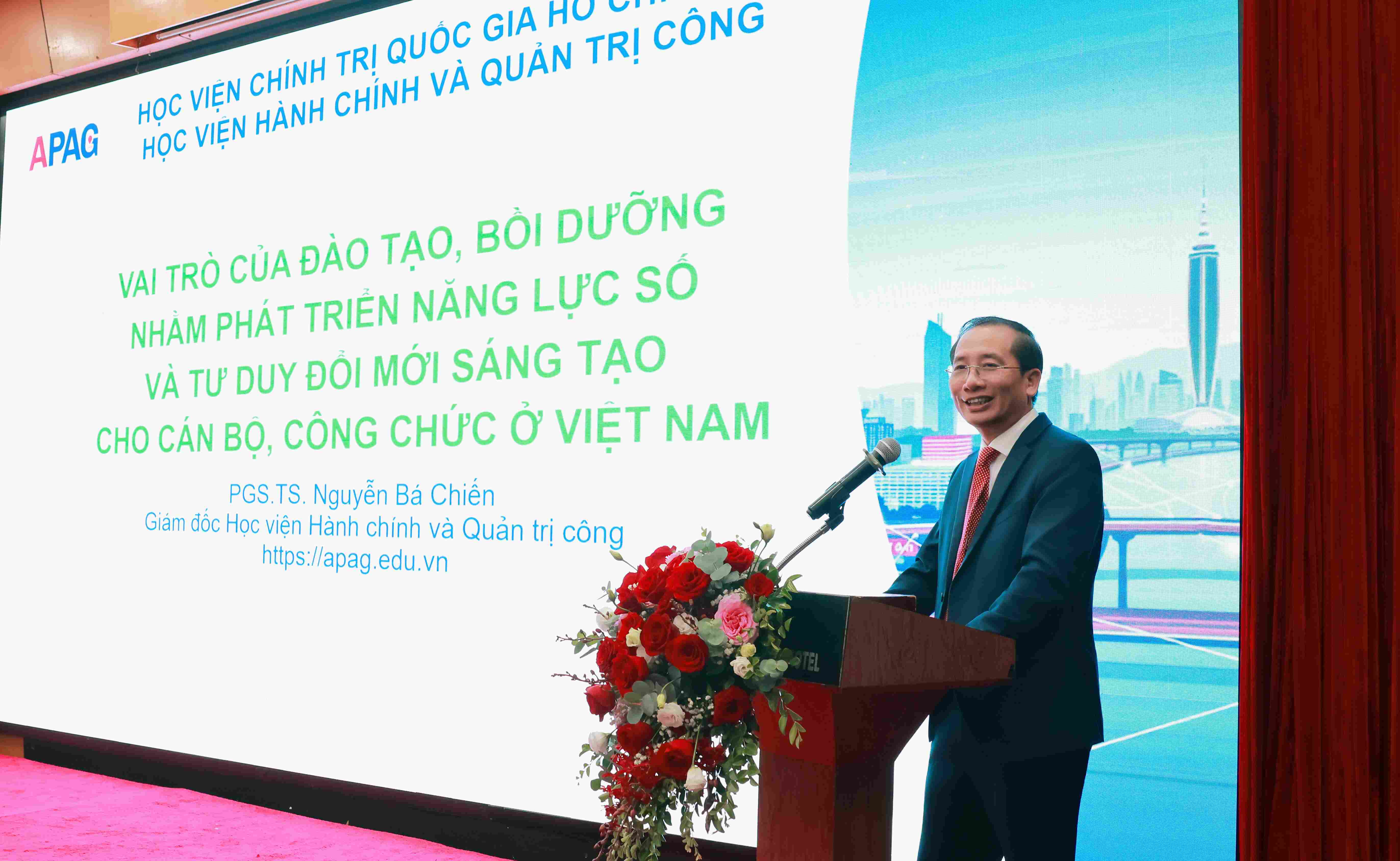 Nhấn mạnh vai trò của đào tạo, bồi dưỡng trong phát triển năng lực số và tư duy sáng tạo cho cán bộ, công chức ở Việt Nam, PGS.TS. Nguyễn Bá Chiến chỉ rõ, năng lực số giúp công chức nắm vững công nghệ thông tin, dữ liệu lớn, trí tuệ nhân tạo và các nền tảng số, từ đó ứng dụng hiệu quả vào quản lý nhà nước và cung ứng dịch vụ công. Việc nâng cao năng lực số góp phần rút ngắn thời gian xử lý hồ sơ, tăng minh bạch và nâng cao hiệu quả hoạt động hành chính. Ông khẳng định thêm, tư duy sáng tạo sẽ giúp cán bộ chủ động xây dựng giải pháp đổi mới, cải tiến quy trình và nâng cao chất lượng dịch vụ công. Các chương trình đào tạo về tư duy hệ thống, tư duy thiết kế và quản trị đổi mới khuyến khích công chức linh hoạt, toàn diện, năng động, sáng tạo hơn trong giải quyết vấn đề.