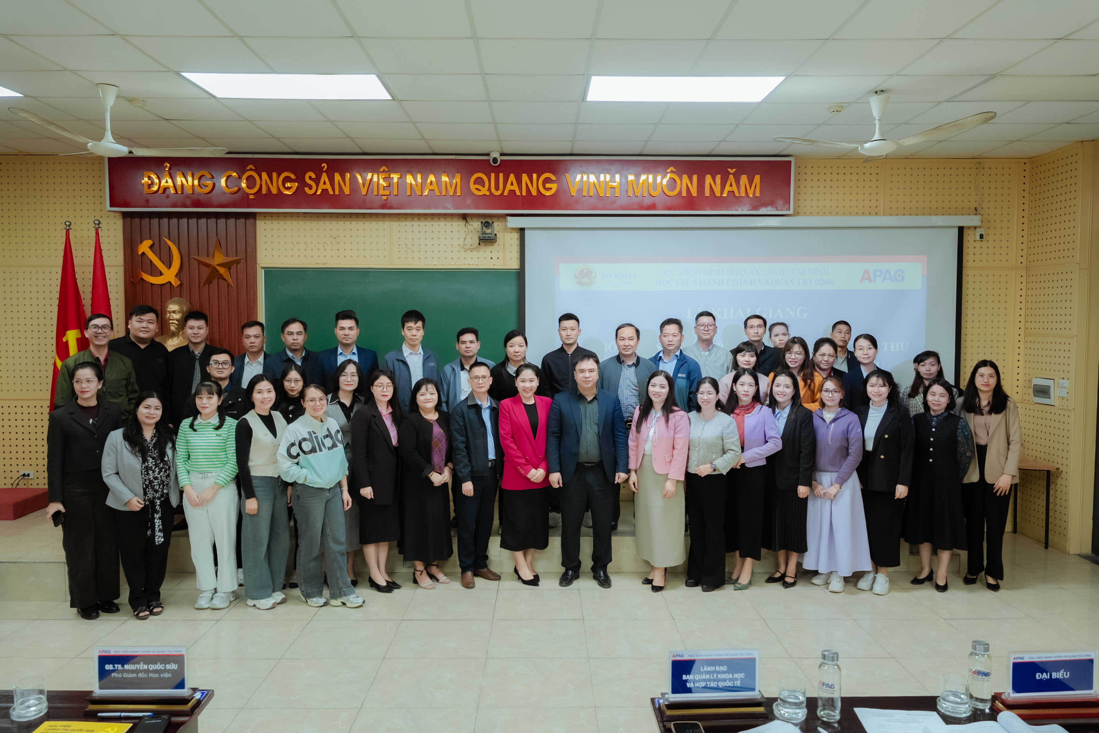 (apag.edu.vn) - Sáng ngày 09/12/2025, tại trụ sở số 77 Nguyễn Chí Thanh, Hà Nội, Học viện Hành chính và Quản trị công đã long trọng tổ chức Lễ Khai giảng Lớp “Bồi dưỡng nghiệp vụ chuyên ngành đặc thù cho công chức xã thuộc lĩnh vực Nội vụ” năm 2025. Buổi lễ diễn ra trong không khí trang trọng, thể hiện sự quan tâm của Bộ Nội vụ và Học viện đối với công tác nâng cao chất lượng đội ngũ công chức cấp xã trên cả nước.