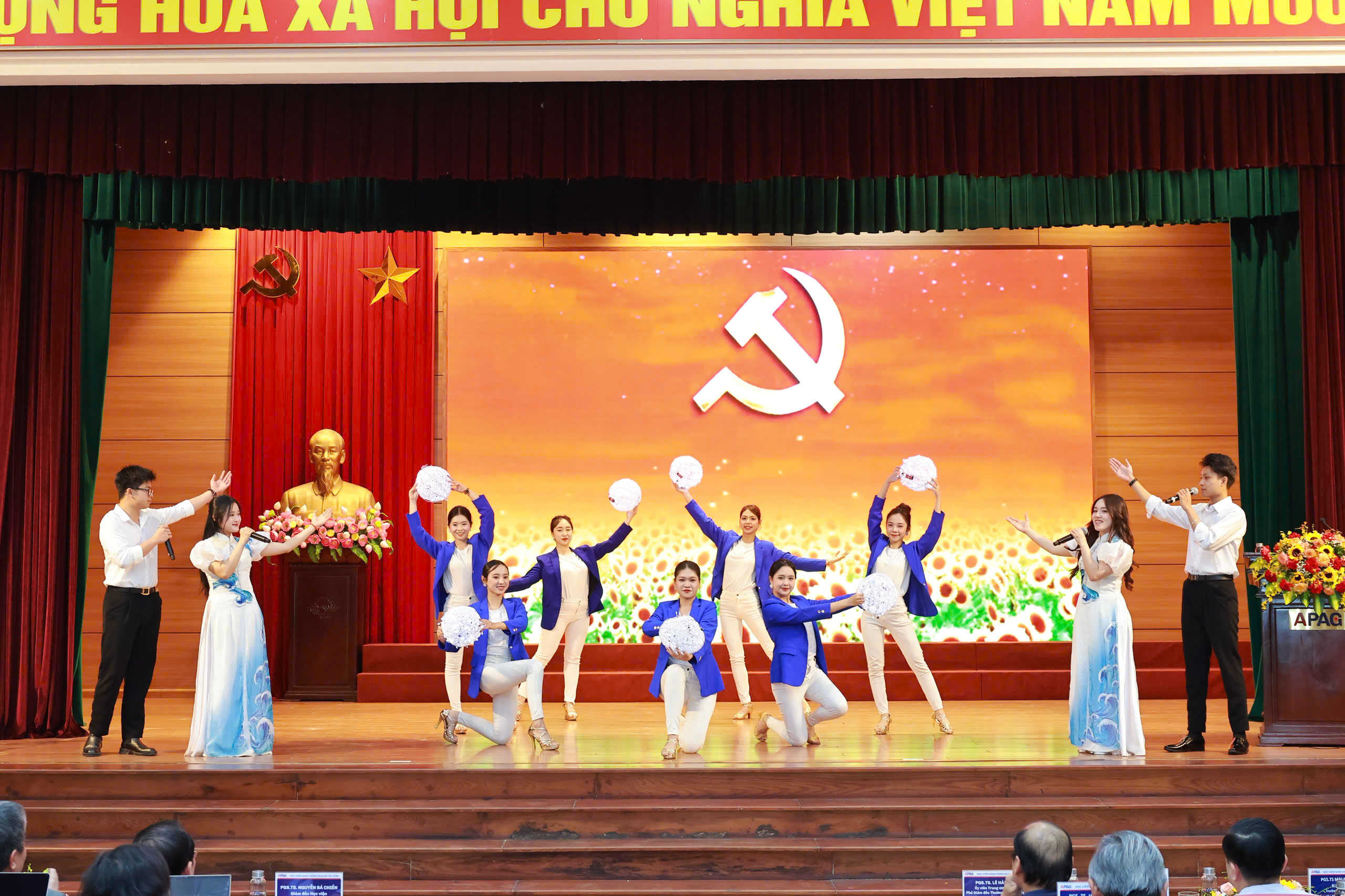 Văn nghệ chào mừng.Tham dự Lễ phát động, về phía Học viện Chính trị quốc gia Hồ Chí Minh có: PGS.TS. Lê Hải Bình, Ủy viên Trung ương Đảng, Phó Giám đốc Thường trực Học viện; PGS.TS. Nguyễn Văn Hậu, Trưởng Ban Công tác Đảng - Đoàn thể, Chánh Văn phòng Đảng ủy Học viện; TS. Lê Thị Chiên, Phó Vụ trưởng Vụ Quản lý khoa học, Chánh Văn phòng Ban Chỉ đạo 35 Học viện.