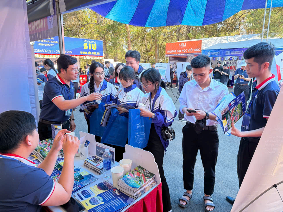 Hoạt động tư vấn được tổ chức với nhiều hình thức phong phú như tư vấn trực tiếp tại gian hàng, phát tài liệu tuyển sinh, giao lưu hỏi, đáp và giải đáp thắc mắc theo từng nhóm học sinh. Qua đó, các em học sinh được tiếp cận thông tin tuyển sinh chính thống, định hướng rõ hơn về ngành học phù hợp với năng lực, sở trường và nhu cầu của thị trường lao động trong tương lai.