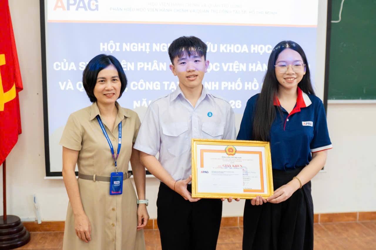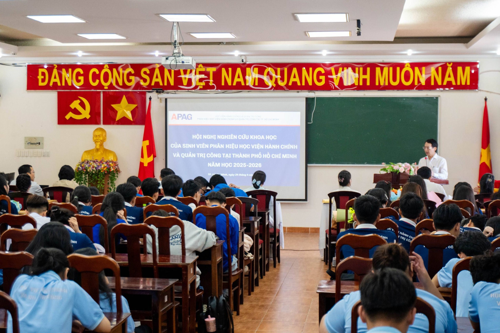 Phát biểu chỉ đạo tại Hội nghị, PGS.TS. Lương Thanh Cường - Phó Giám đốc Học viện Hành chính và Quản trị công chia sẻ: NCKH không chỉ là nhiệm vụ học tập mà còn là môi trường lý tưởng để đoàn viên, sinh viên phát huy tinh thần xung kích, sáng tạo. Những công trình nghiên cứu hôm nay chính là nền tảng để các em hình thành tư duy khoa học, góp phần nâng cao chất lượng học tập và rèn luyện, chuẩn bị hành trang vững chắc cho sự nghiệp công vụ tương lai.