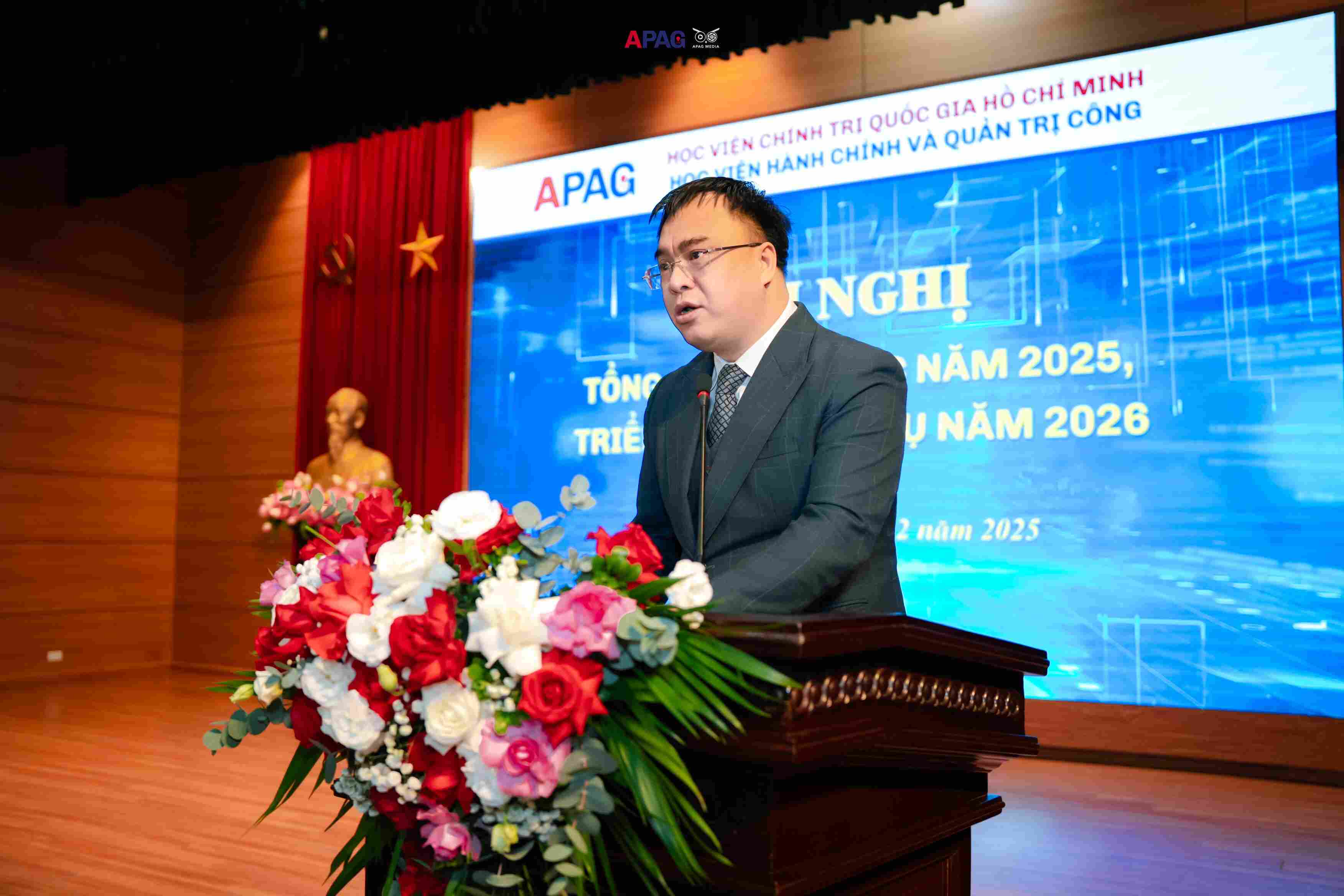 Phó Giám đốc Học viện Chính trị quốc gia Hồ Chí Minh bày tỏ tin tưởng, với nền tảng đã được xây dựng vững chắc, tinh thần đoàn kết và quyết tâm đổi mới, Học viện Hành chính và Quản trị công sẽ không chỉ ổn định mà còn bứt phá mạnh mẽ trong năm 2026, từng bước khẳng định vị thế là trung tâm quốc gia, hướng tới ngang tầm khu vực về đào tạo, bồi dưỡng và nghiên cứu khoa học trong lĩnh vực hành chính, quản lý nhà nước và quản trị công.