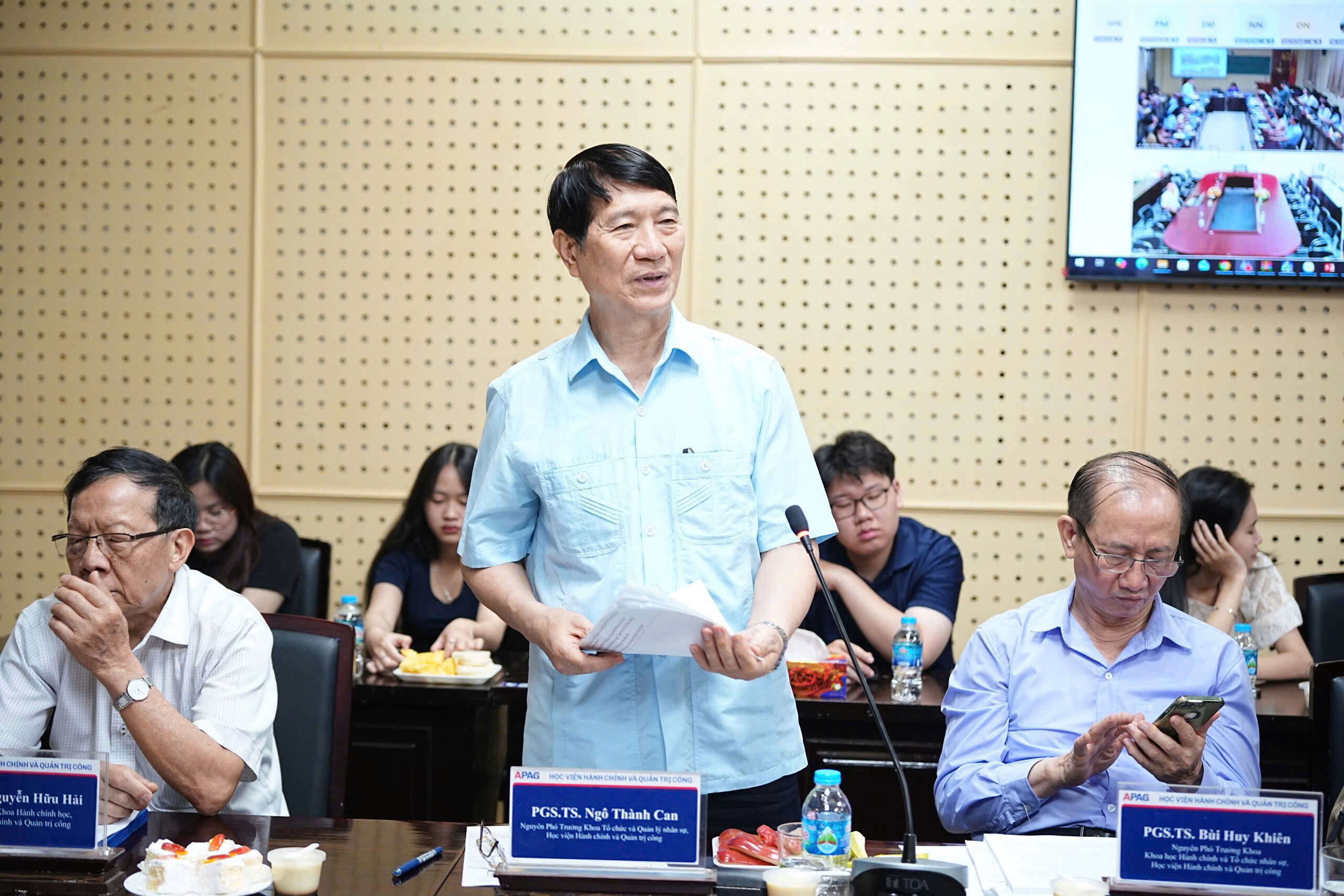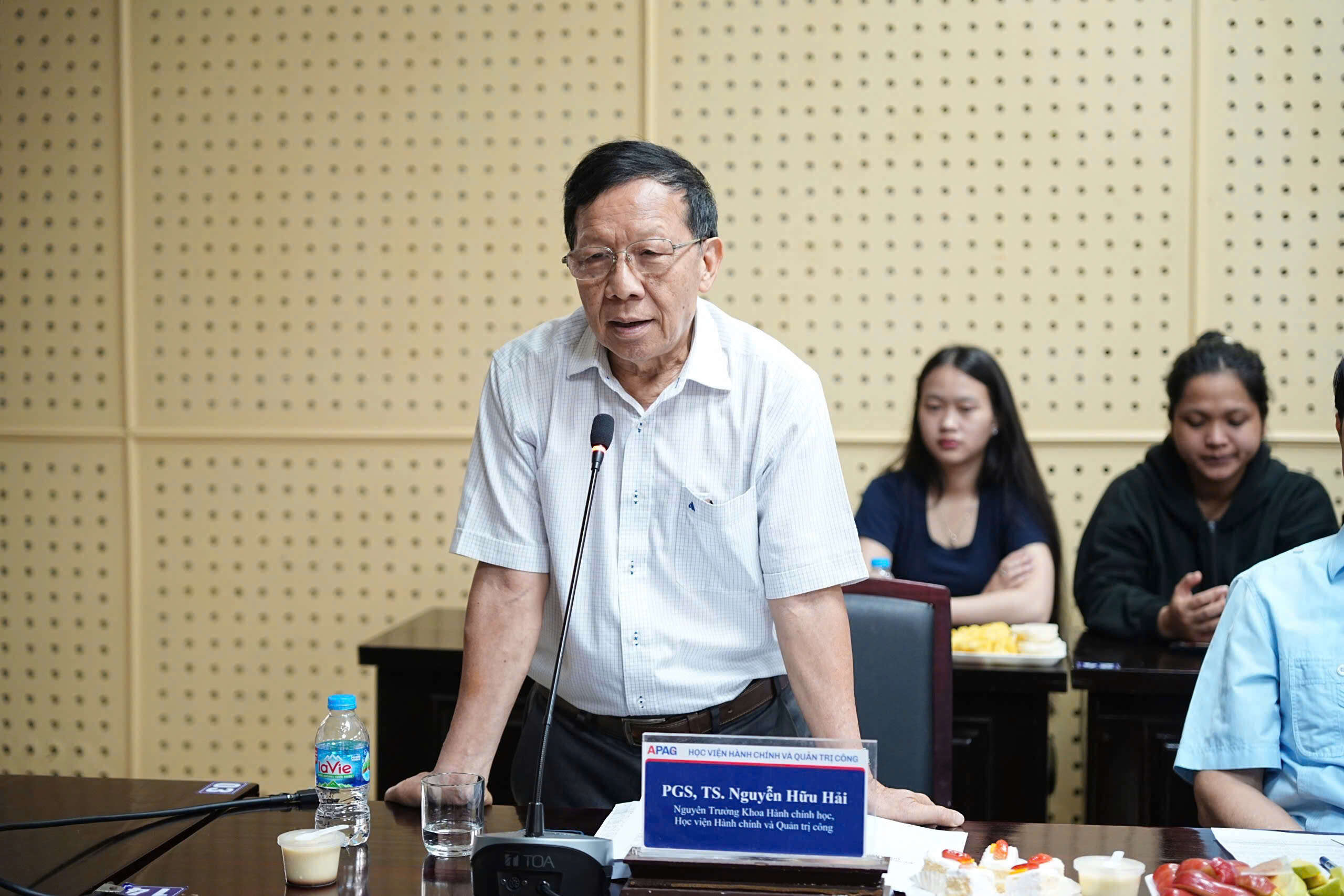 PGS.TS. Nguyễn Hữu Hải, nguyên Trưởng khoa, Khoa Hành chính học, Học viện Hành chính Quốc gia tham luận tại Hội thảo Tại Hội thảo, các tham luận tập trung làm rõ những vấn đề lý luận và thực tiễn của quản trị công trong bối cảnh mới. PGS.TS. Nguyễn Hữu Hải nhấn mạnh yêu cầu chuyển đổi toàn diện từ mô hình quản lý hành chính truyền thống sang mô hình quản trị hiện đại, thích ứng, dựa trên dữ liệu, công nghệ và sự tham gia của nhiều chủ thể trong xã hội.
