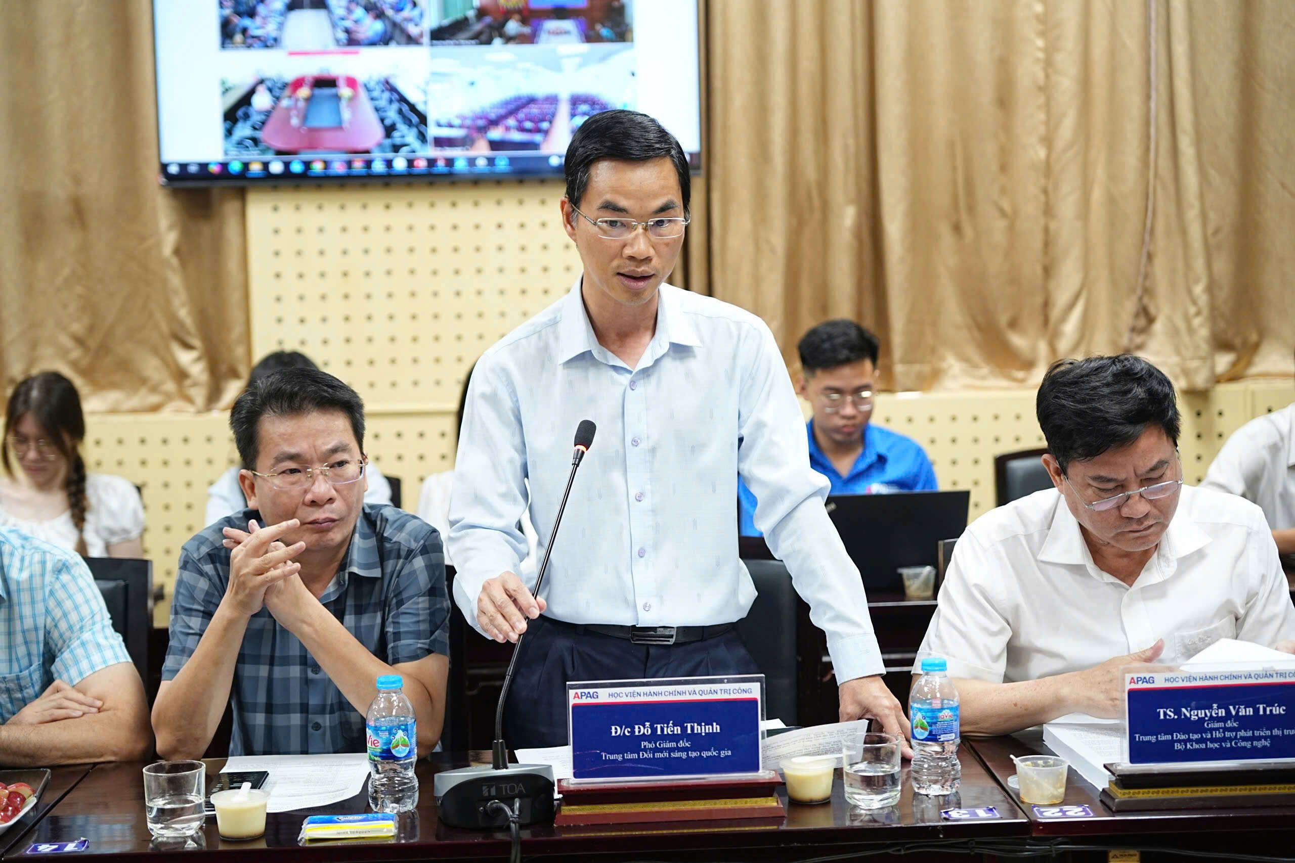 Ông Đỗ Tiến Thịnh, Phó Giám đốc Trung tâm Đổi mới sáng tạo quốc gia tham luận tại Hội thảo.