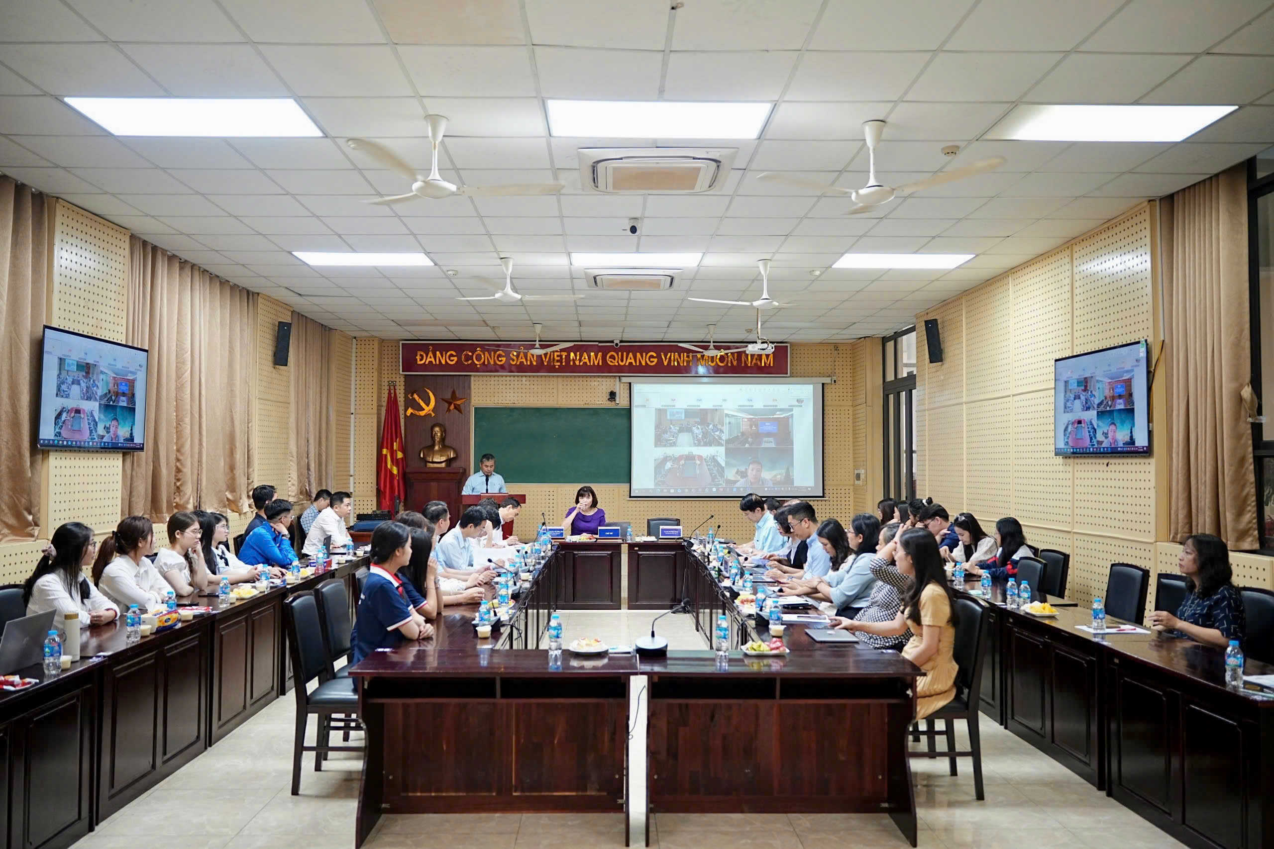 Quang cảnh Hội thảo.Tham dự Hội thảo có TS. Bùi Phương Đình, Phó Giám đốc Học viện; TS. Nguyễn Tiến Thành, Bí thư phường Xuân Đỉnh, TP. Hà Nội; PGS.TS. Nguyễn Hữu Hải, nguyên Trưởng khoa, Khoa Hành chính học, Học viện Hành chính Quốc gia; PGS.TS. Ngô Thành Can, nguyên Phó Trưởng khoa, Khoa Tổ chức và Quản lý nhân sự; PGS.TS. Bùi Huy Khiên, nguyên Phó Trưởng khoa, Khoa Khoa học hành chính và Tổ chức nhân sự; ông Đỗ Tiến Thịnh, Phó Giám đốc Trung tâm Đổi mới sáng tạo quốc gia; TS. Nguyễn Văn Trúc, Giám đốc Trung tâm Đào tạo và Hỗ trợ phát triển thị trường, Bộ Khoa học và Công nghệ; TS. Nguyễn Xuân Bình, Trưởng khoa, Khoa Lãnh đạo học và Hành chính công, Học viện Chính trị Khu vực I; TS. Nguyễn Hoàng Hà, Viện trưởng Viện Nghiên cứu phát triển kinh tế - xã hội Đà Nẵng, cùng đông đảo giảng viên, nhà nghiên cứu và sinh viên Học viện.