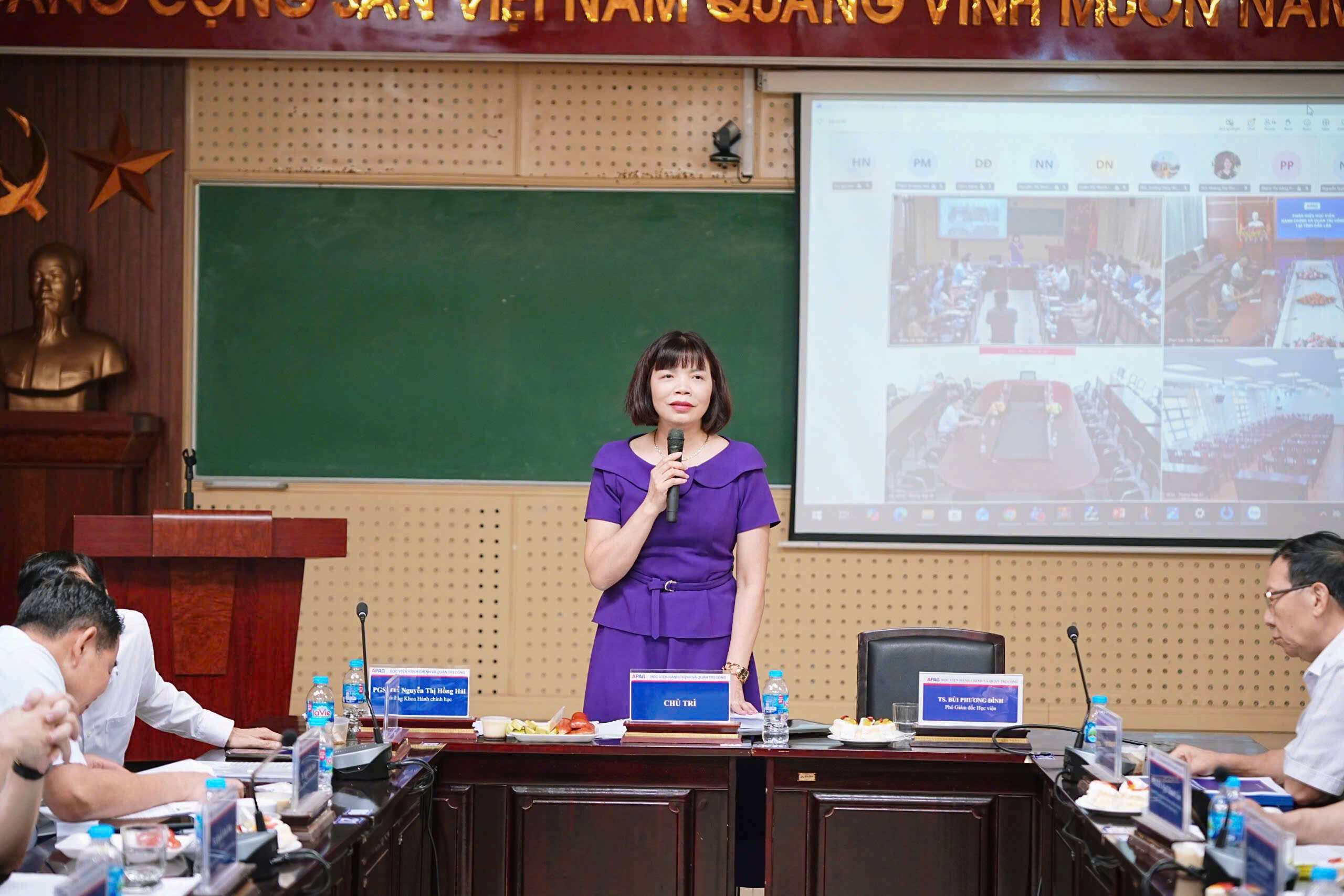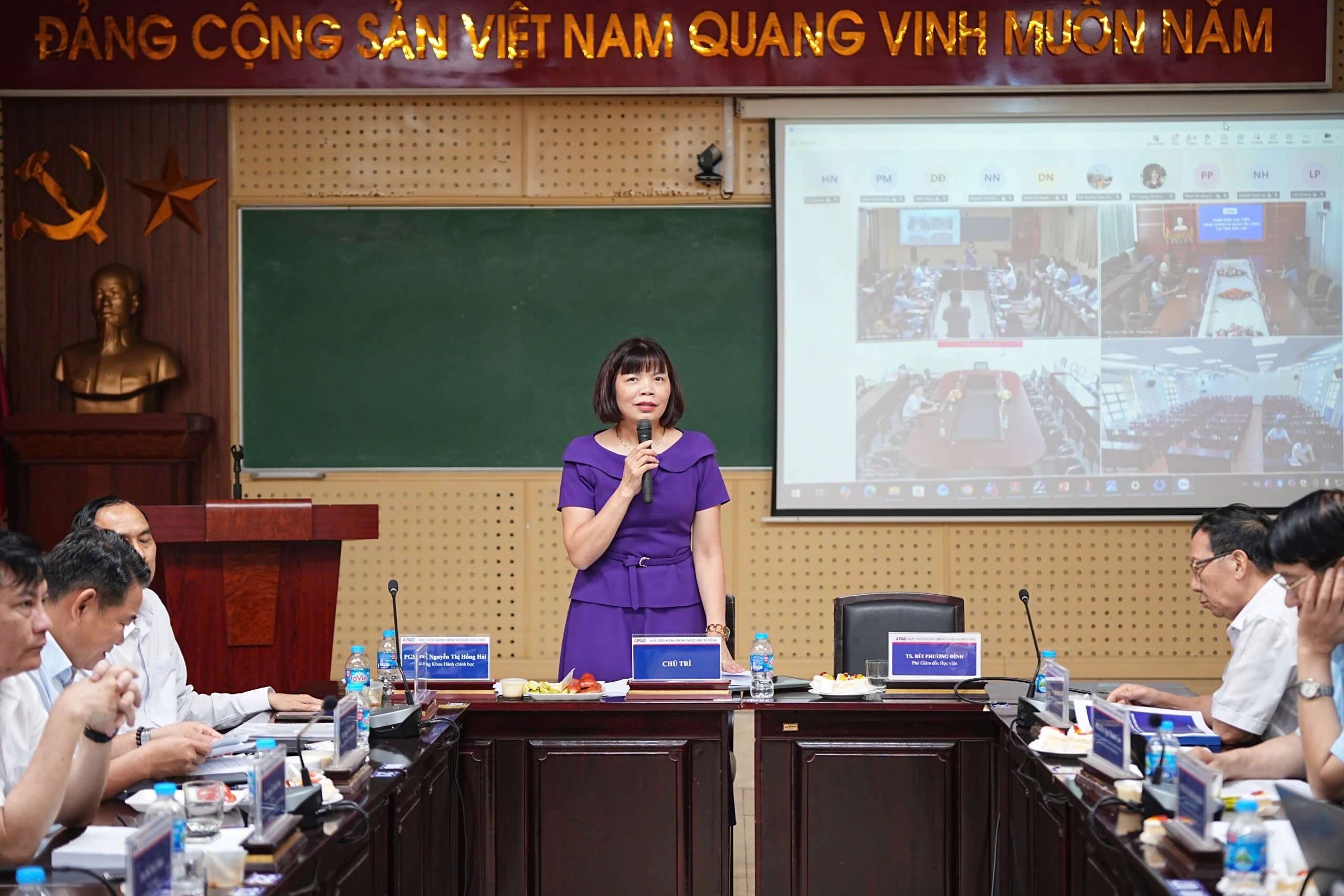 (apag.edu.vn) - Sáng ngày 14/4/2026, Học viện Hành chính và Quản trị công tổ chức Hội thảo khoa học với chủ đề “Quản trị công trong kỷ nguyên mới: xu hướng, thách thức và giải pháp”. Hội thảo do PGS.TS. Nguyễn Thị Hồng Hải, Trưởng khoa, Khoa Hành chính học chủ trì và được tổ chức theo hình thức trực tiếp kết hợp trực tuyến tới các Phân hiệu của Học viện.