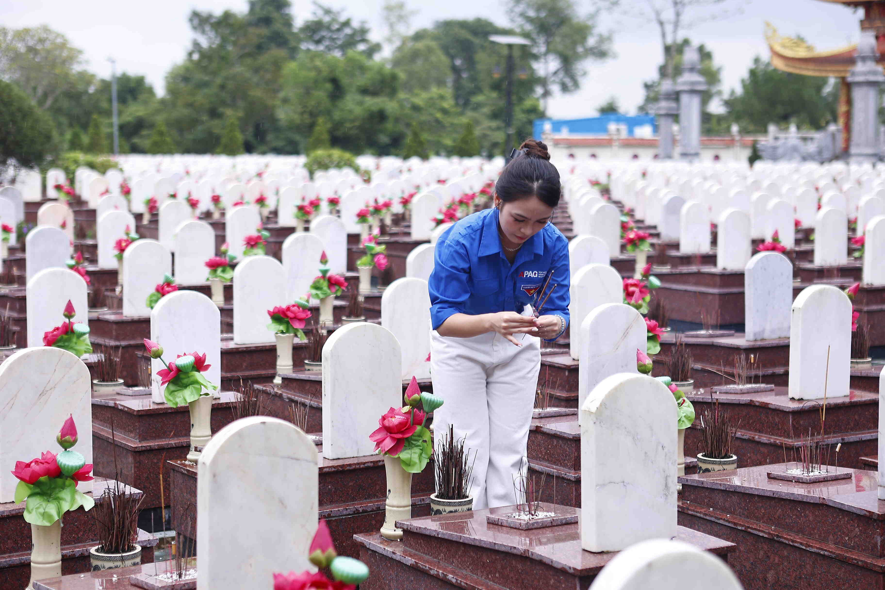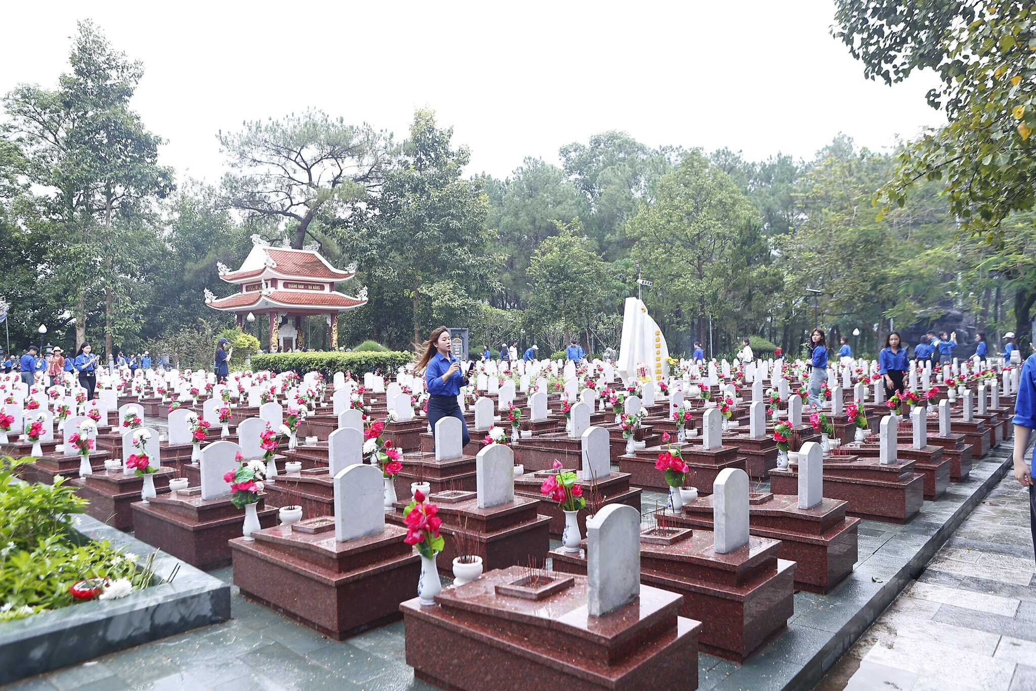 Giảng viên, sinh viên Khoa Quản lý phát triển xã hội dâng hương tại Nghĩa trang Trường Sơn