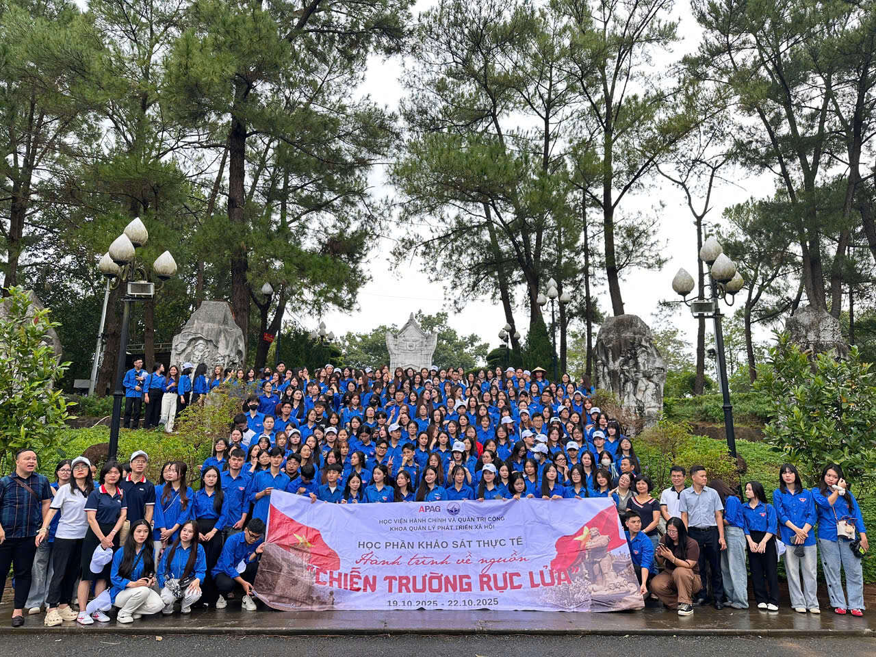 (apag.edu.vn) - Thực hiện Quyết định số 3298-QĐ/HVHC&QTC ngày 09/10/2025 về việc ban hành Kế hoạch tổ chức học phần “Khảo sát thực tế” cho các lớp đại học chính quy Khóa 23 ngành Quản lý văn hóa và Văn hóa học, Khoa Quản lý phát triển xã hội tổ chức hành trình về nguồn tại Quảng Trị từ tối ngày 19/10/2025 đến hết ngày 22/10/2025.
