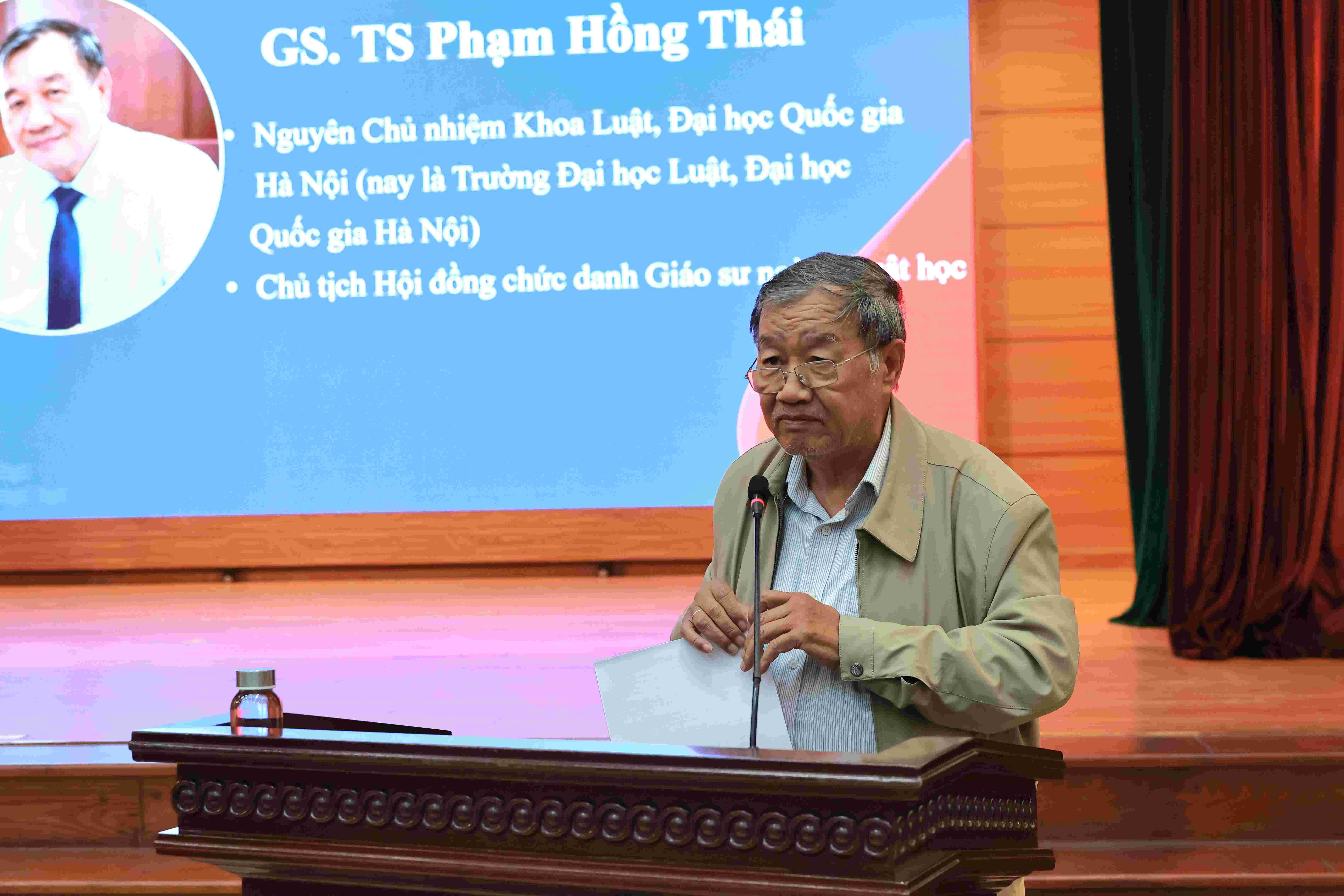 Also attending were scientists: Assoc. Prof. Dr. Le Minh Thong, former Deputy Chairman of the Law Committee of the National Assembly; Prof. Dr. Pham Hong Thai, former Dean of the Faculty of Law - Vietnam National University, Hanoi, Chairman of the Council for Professor Title in Law; Assoc. Prof. Dr. Nguyen Thi Hoai Le, former Director of the Institute of Human Studies, Vietnam Academy of Social Sciences.