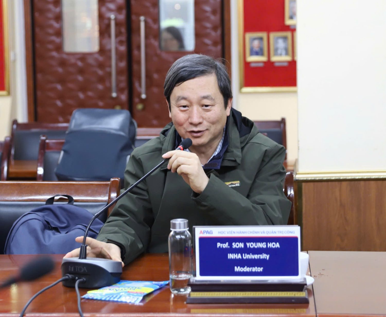 Responding to the cooperation proposals from Prof. Kim Young Soon, Assoc. Prof. Dr. Nguyen Ba Chien thanked and highly appraised the clarity, practicality, and promising nature of the proposed content. APAG will expeditiously draft the proposal for the establishment of the Vietnam – Korea Center (for submission to the Ho Chi Minh National Academy of Politics for review and decision); and formulate cooperation programs such as joint training and student exchanges between APAG and Inha University commencing in 2026. During the session, the APAG President also requested Inha University to facilitate a joint study between the two training institutions on the topic of multicultural exchange within the current context; concurrently, he formally extended an invitation to the professors, lecturers, and researchers of Inha University to attend the Annual International Public Governance Forum 2026, scheduled for October in Hanoi.